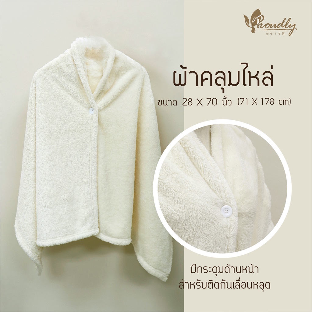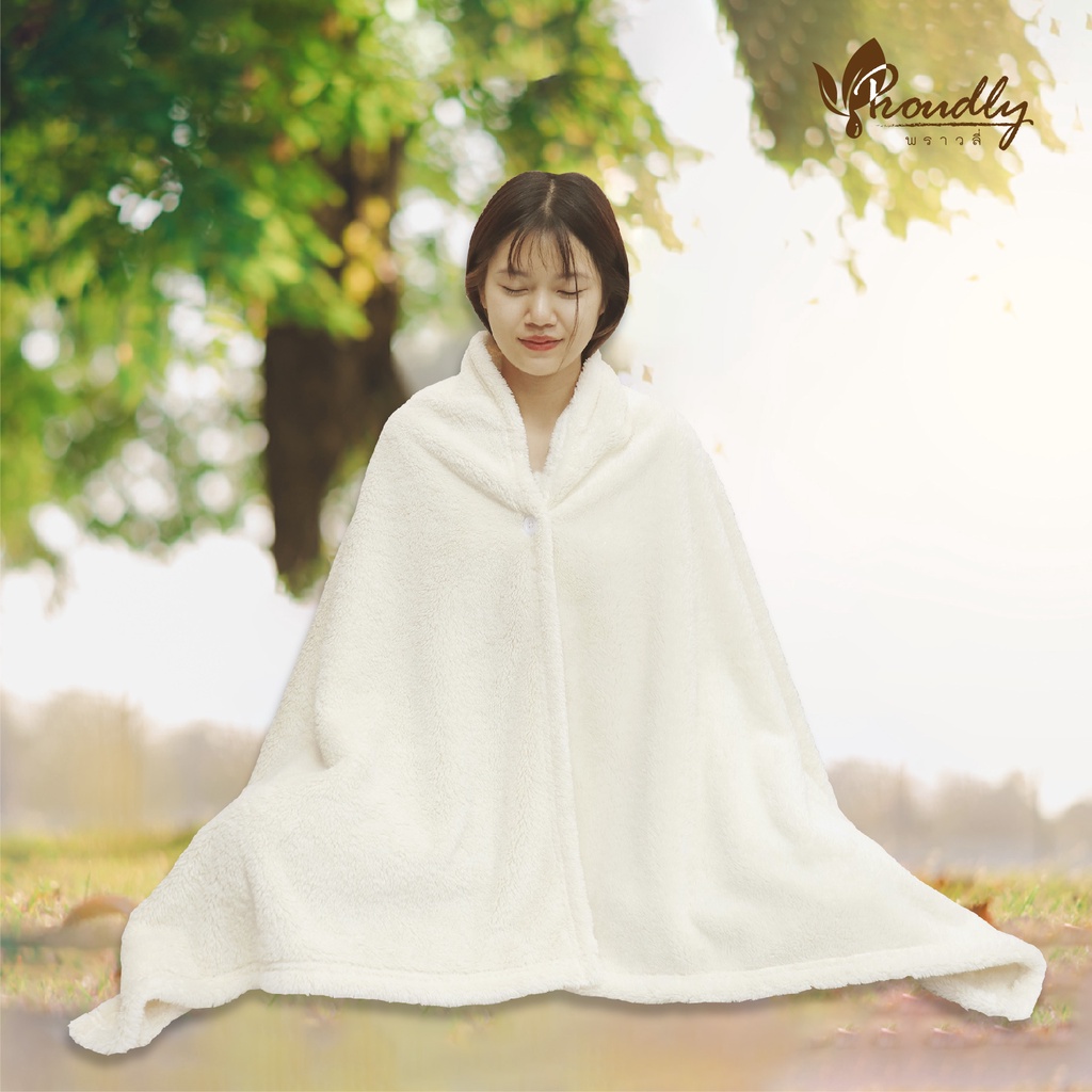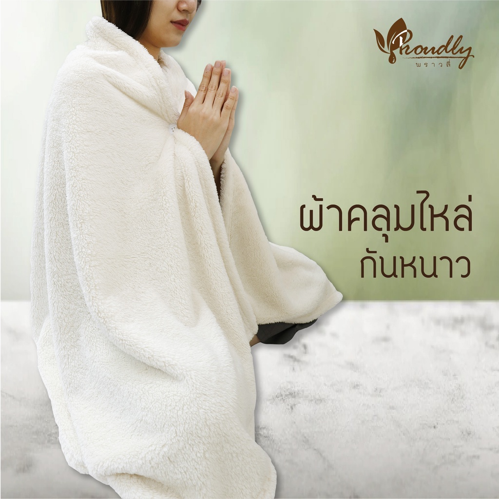 ผ้าคลุมไหล่กันหนาว ผ้าคลุมไหล่ปฎิบัติธรรม สังฆทานถวายภิกษุณี แม่ชี ผ้าคลุมไหล่สีขาวครีม ผ้าโพลีบัวหนานุ่ม