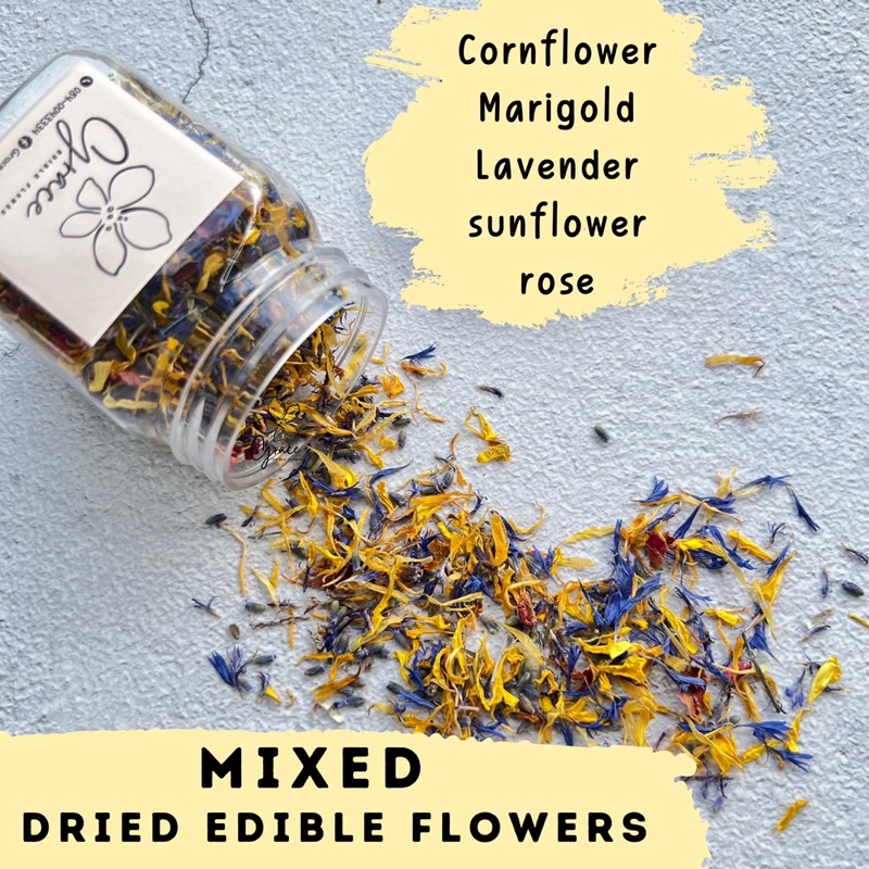 กลีบดอกไม้กินได้แบบแห้ง Dried edible flower sprinkles ใช้สำหรับตกแต่งเบเกอรี่ อาหาร หรืออื่นๆ ตามความต้องการ อายุการเก็บรักษา