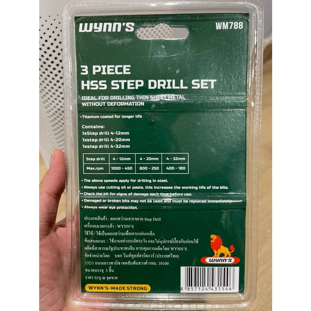Wynn’s ดอกสว่านเจดีย์ แบบเกลียว ดอกสเตป ดอกเจดีย์ Step drill 3ตัว/ชุด รหัส WM788 , WM789