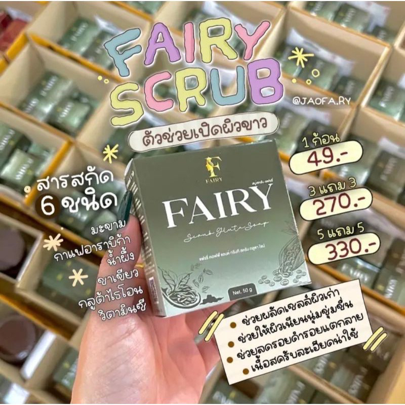 แท้?% Fairy Scrub gluta soap สครับกลูต้า ขาเขียว สบู่สครับแฟรรี่ (สครับเปิดผิวขาว) สครับแฟรี่ กลูต้าชาเขียว