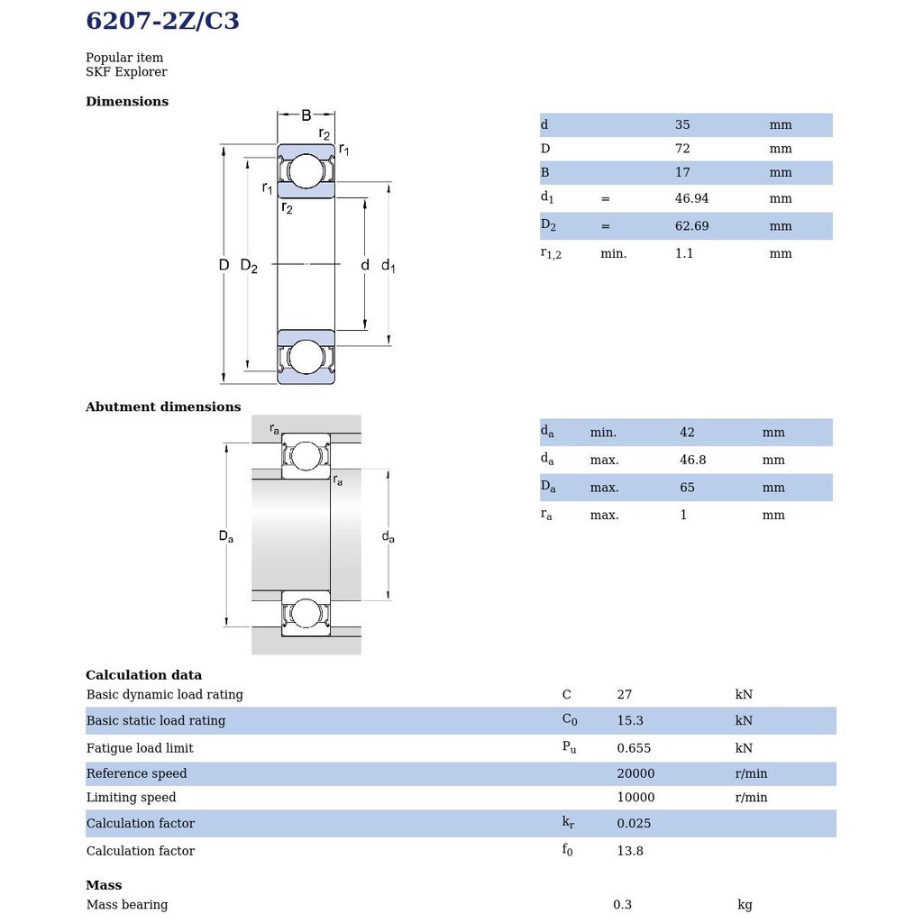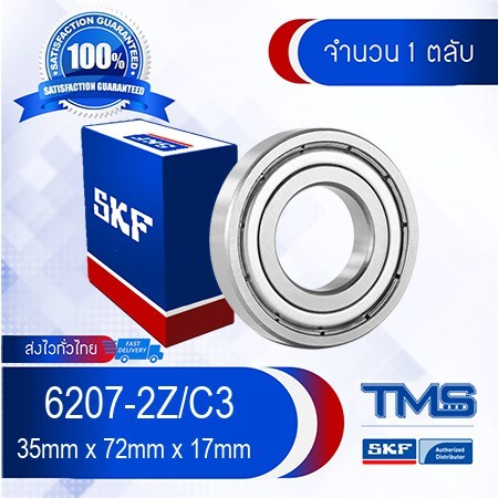 - 6207-2Z/C3 SKF ตลับลูกปืนเม็ดกลมล่องลึก ฝาเหล็ก รองรับความเร็วรอบและความร้อนสูง 6207 2Z C3 (35mm x 72mm x 17mm)