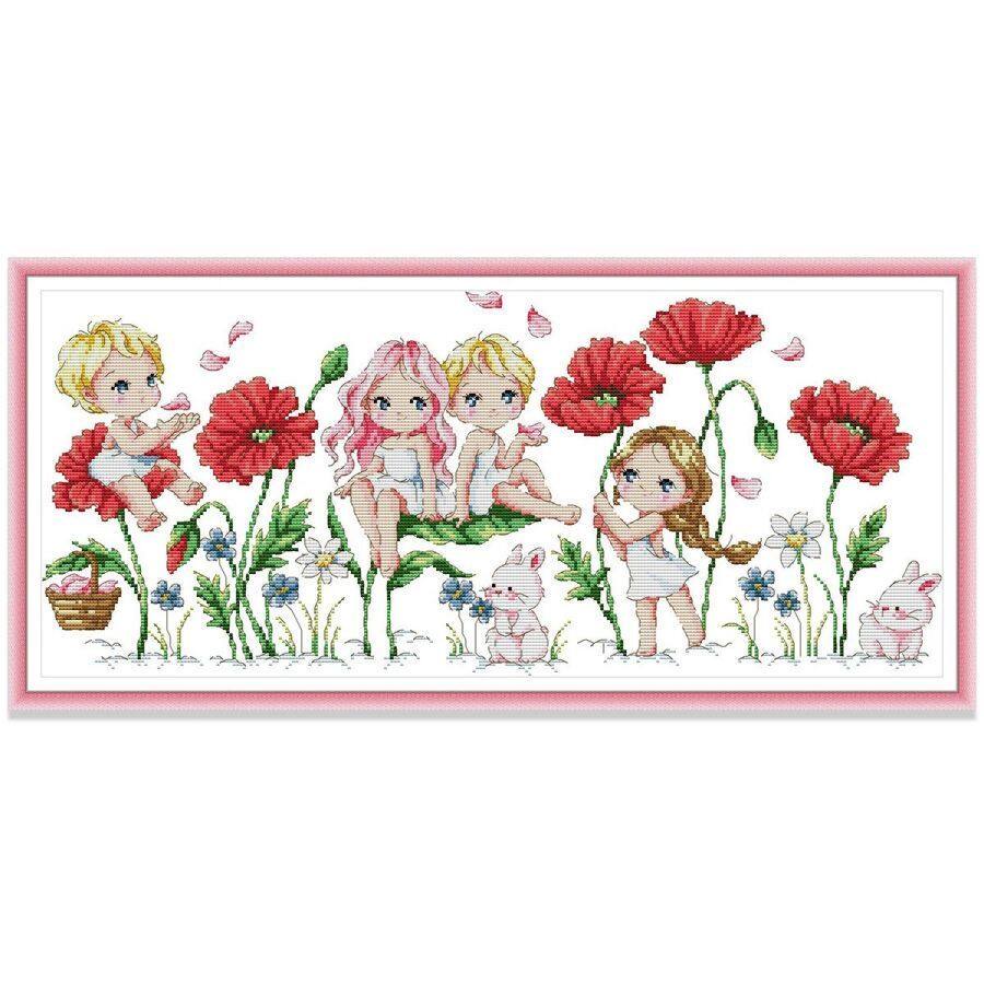 ปักครอสติส ครอสติสแบบปัก เด็กหญิง ตัวละคร 14/11CT ผ้าพิมพ์ลาย