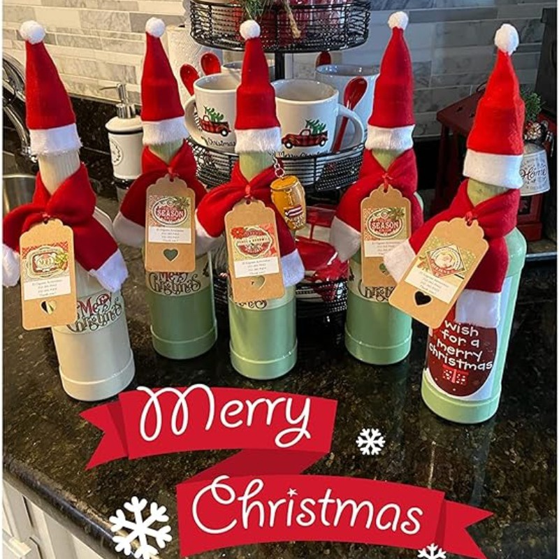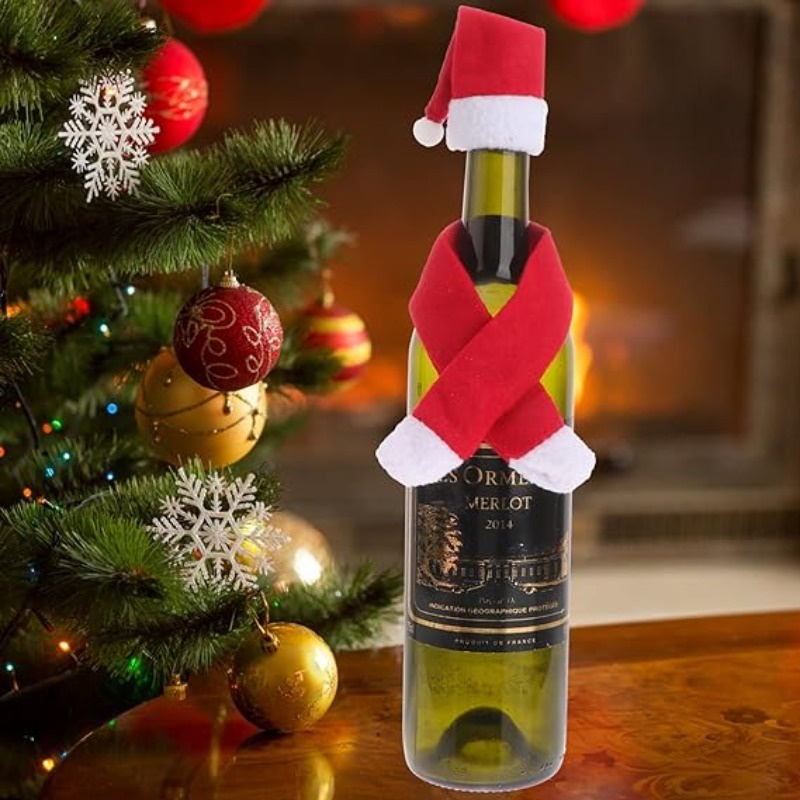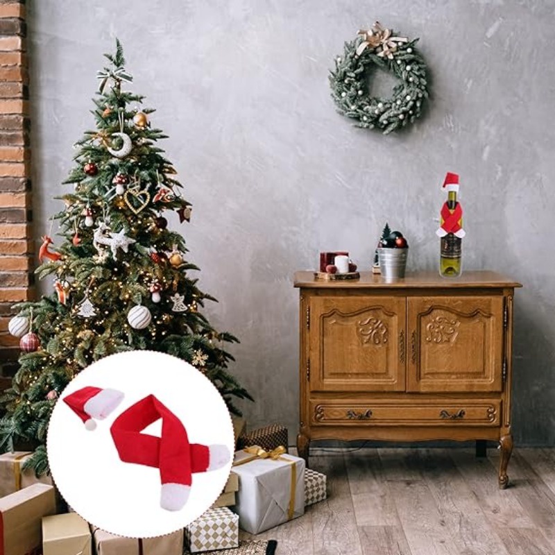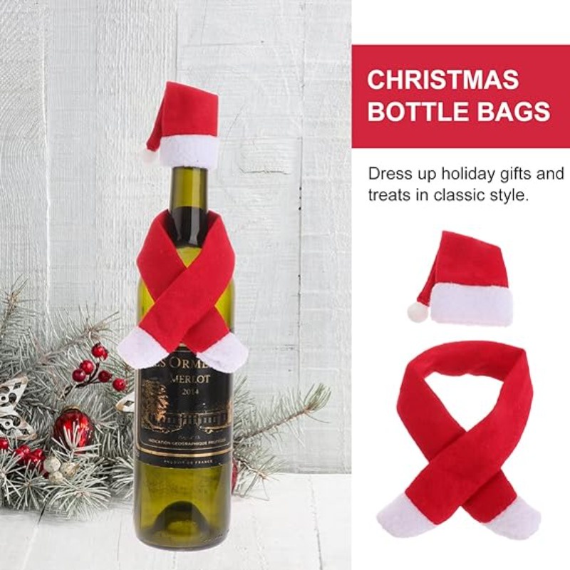 หมวกซานต้าครอส ผ้าพันคอ ขนาดเล็ก สําหรับตกแต่งขวด 5 ชุด