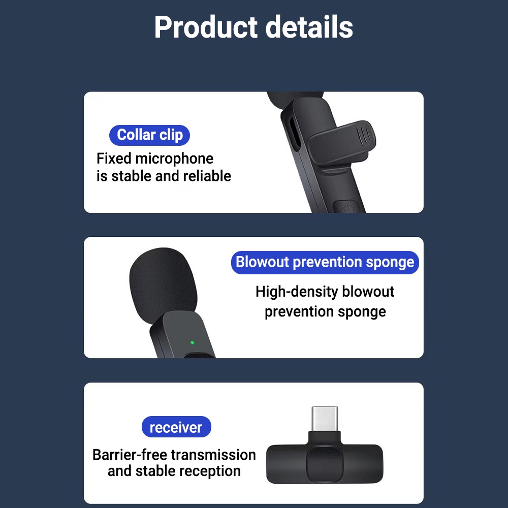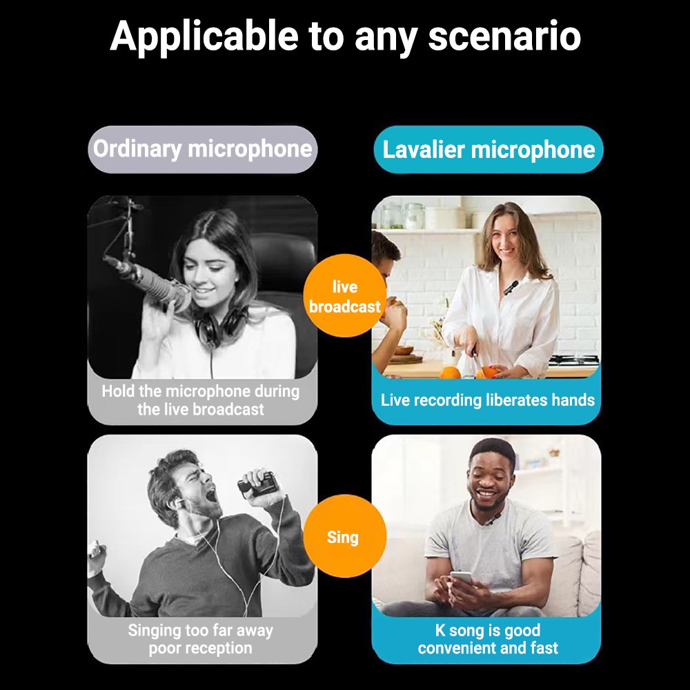 ไมโครโฟนไร้สายแบบพกพา Lapel Wireless Microphone มัลติฟังก์ชั่นสำหรับฉากต่างๆ