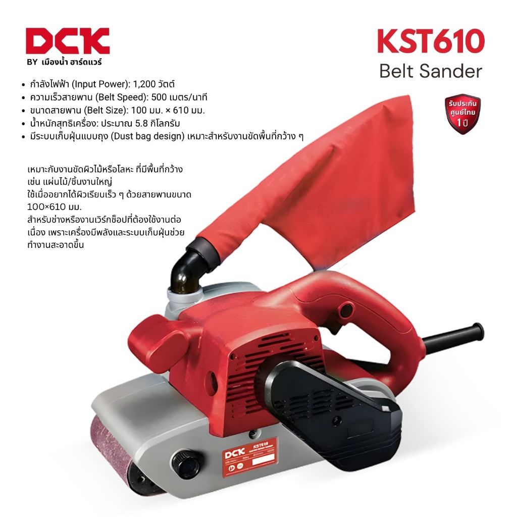 เครื่องขัดกระดาษทรายรถถัง สายพานขนาด 100 มม. × 610 มม. 1200 วัตต์ มาพร้อมถุงเก็บฝุ่น ( DC รุ่น DST610 / DCK รุ่น KST610)