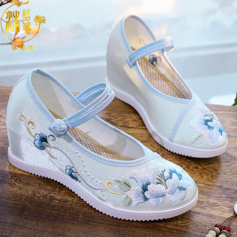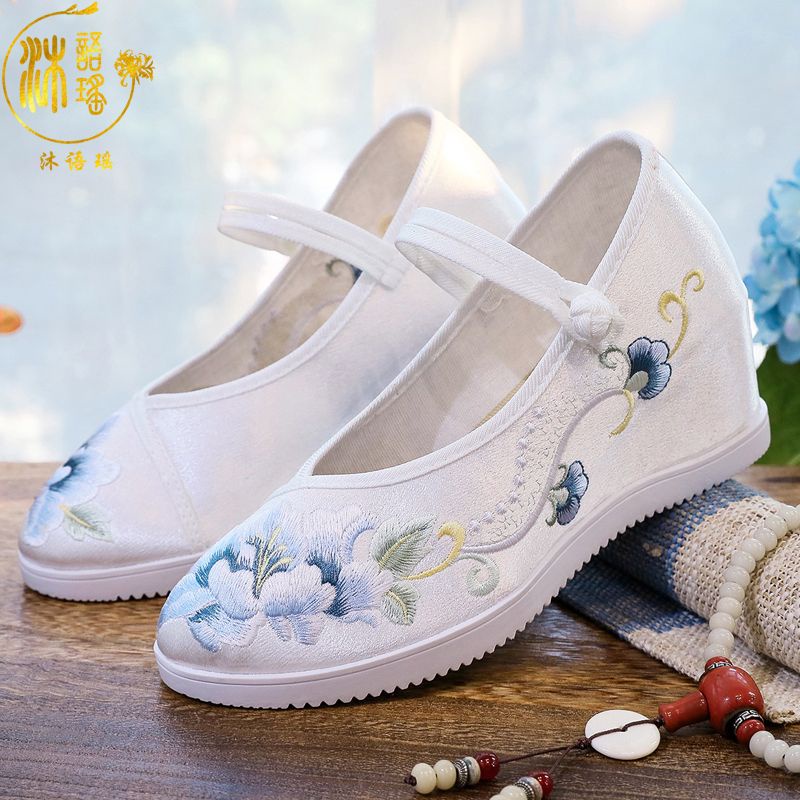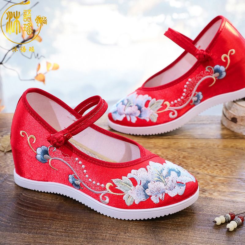 รองเท้า รองเท้าส้นสูง ปักลาย สไตล์จีนโบราณ สําหรับผู้หญิง