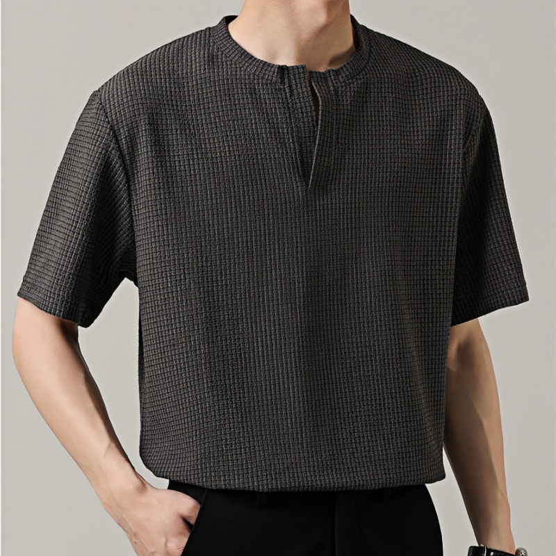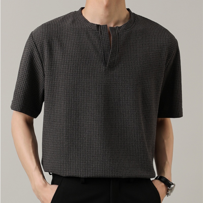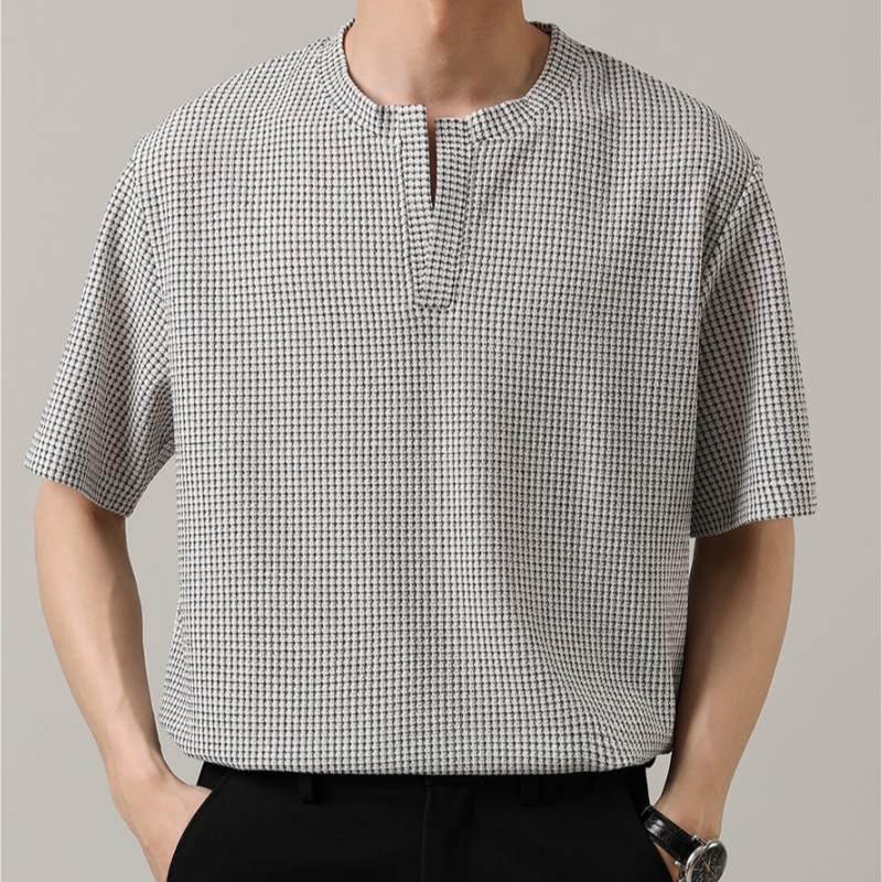 CLIFF เสื้อเชิ้ตแขนสั้นสำหรับผู้ชาย คอวี สไตล์เรียบง่าย ผ้าบาง สะดวกสบายและระบายอากาศได้ดี แฟชั่นยอดนิยม