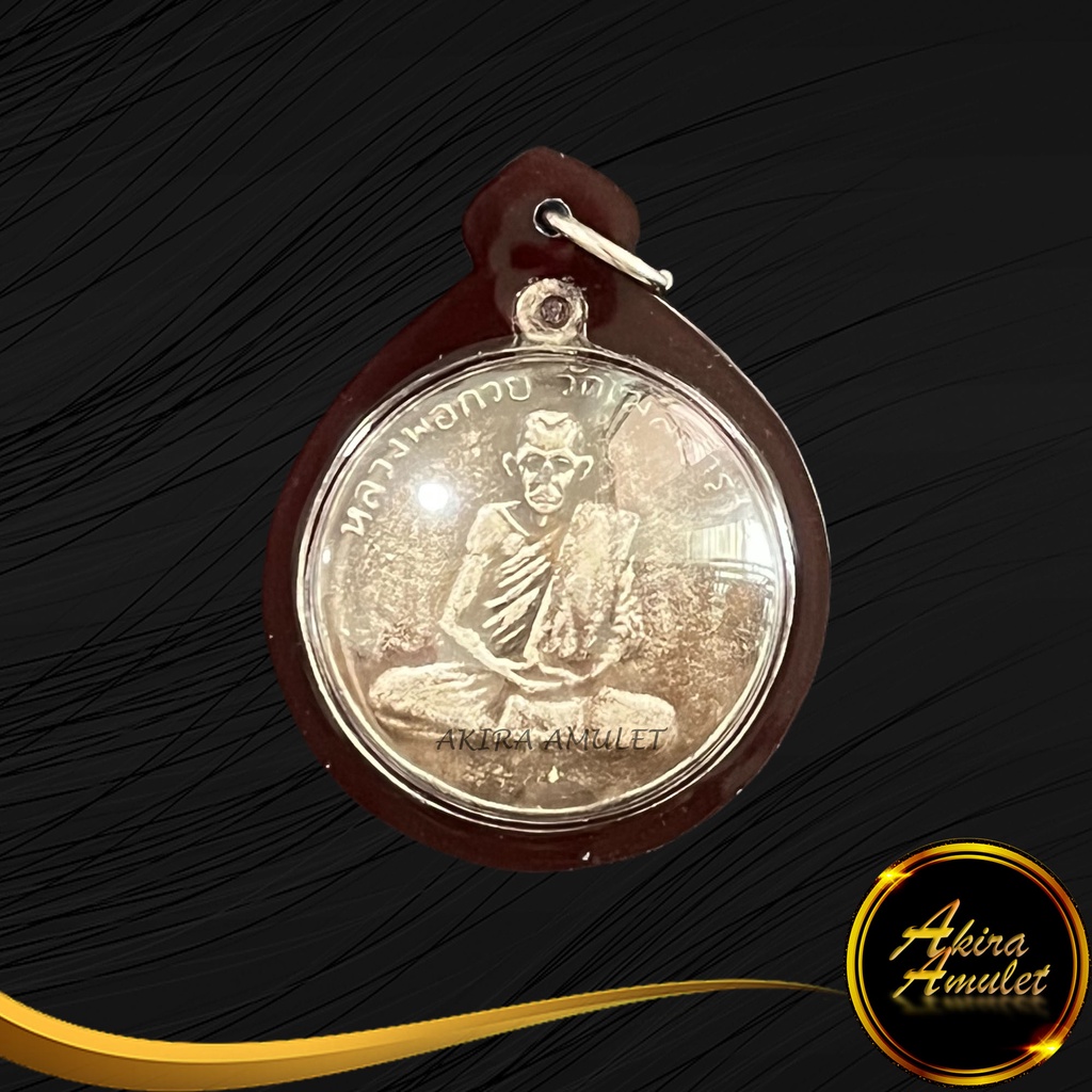 จี้พระ เหรียญรุ่นแรก หลวงพ่อกวย ชุตินธโร (ฝาบาตร) วัดโฆสิตาราม (วัดบ้านแค) อ.สรรคบุรี จ.ชัยนาท พร้อมเลี่ยมกรอบพลาสติก