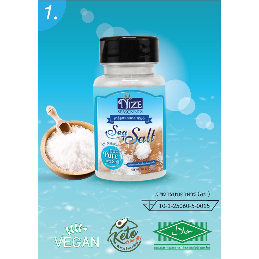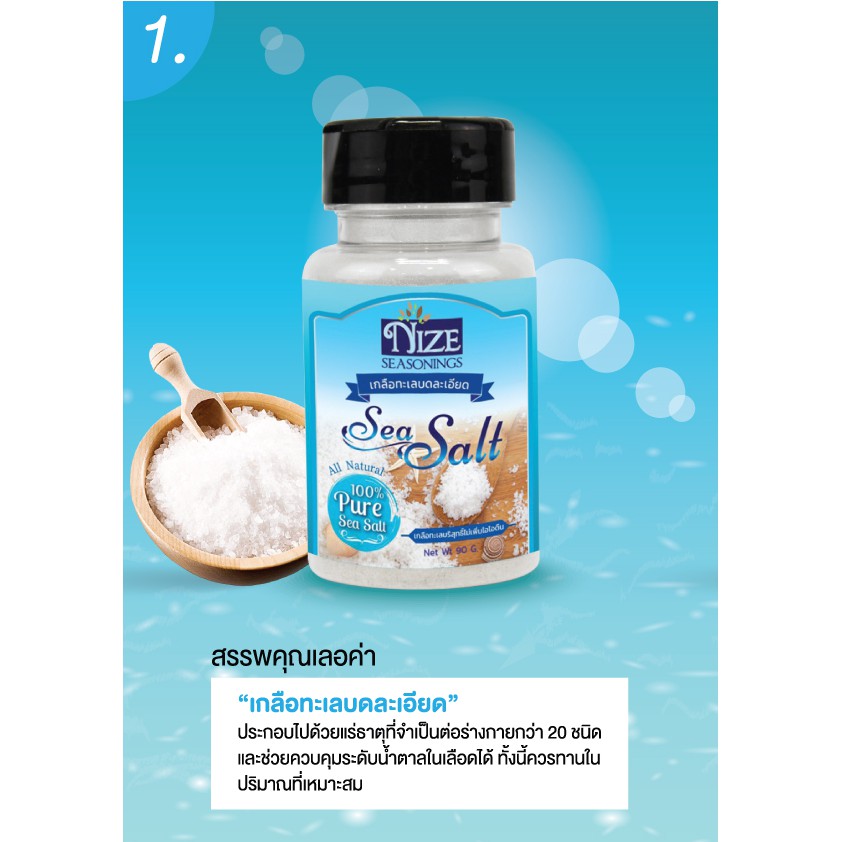 เกลือทะเล แบรนด์ " ไนซ ซีซันนิ่ง " บรรจุในขวดโรย ฝารุ่นใหม่ เปิดได้ 2 ด้าน ใช้งานง่ายมาก