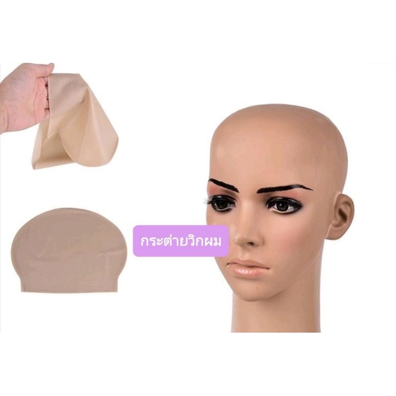 ทำจากยางพารา ใช้เเต่งเลียนแบบหัวล้าน หัวโล้น มีเน็ตครอบเก็บผมสีเนื้อแถมในแพ็คเพื่อความเนียนเพิ่มขึ้น