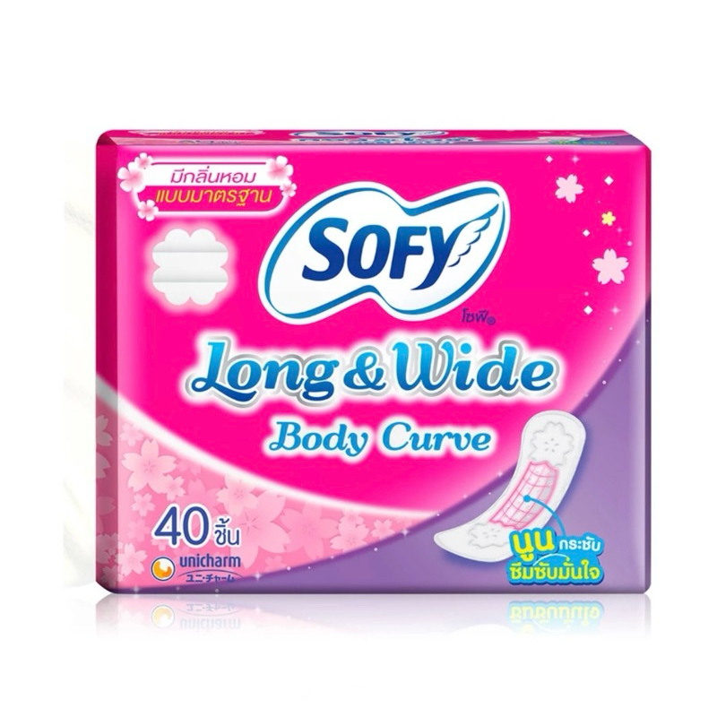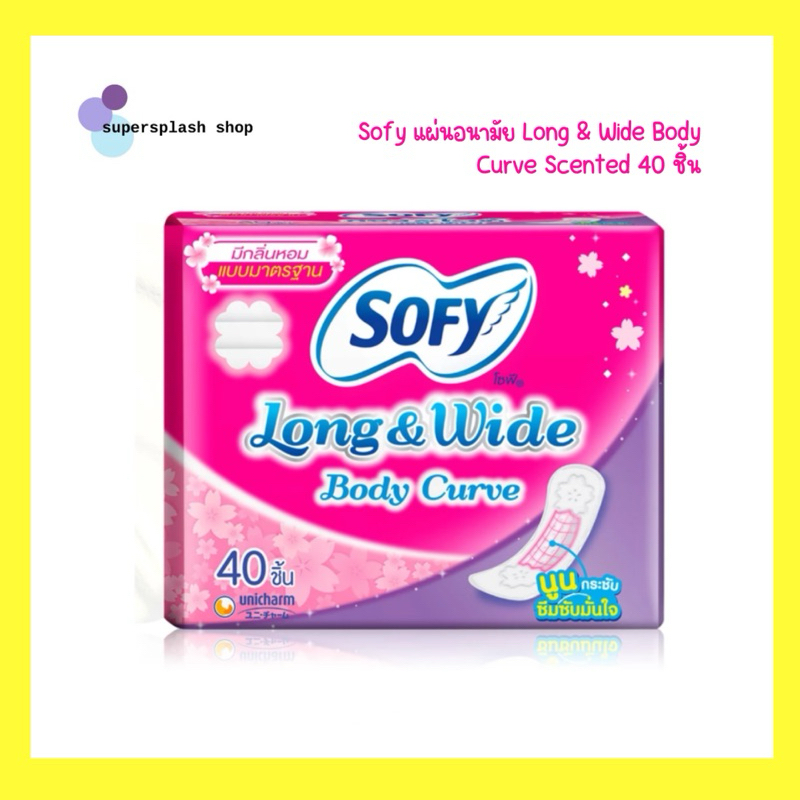 Sofy แผ่นอนามัย Long & Wide Body Curve Scented 40ชิ้น โซฟี แผ่นอนามัยมีกลิ่นหอม แบบมาตรฐาน ผ้าอนามัย