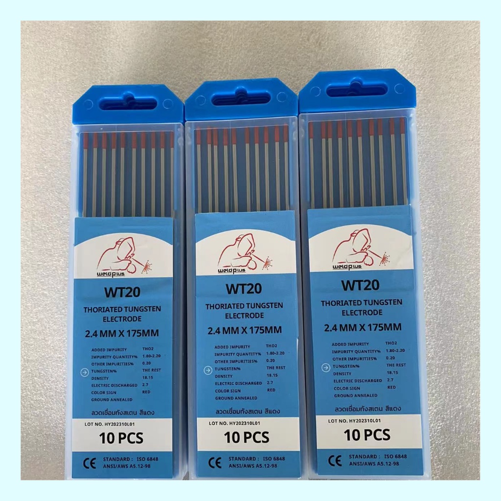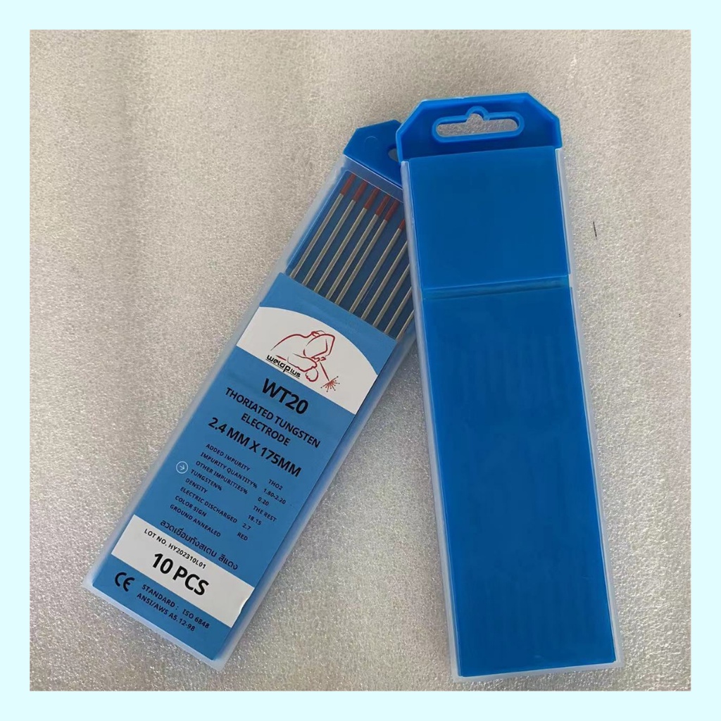 ลวดทังสเตน หัวสีแดง (10ชิ้น/กล่อง) Tungsten Electrode 2.4mm X175mm แบรนด์ WELDPLUS