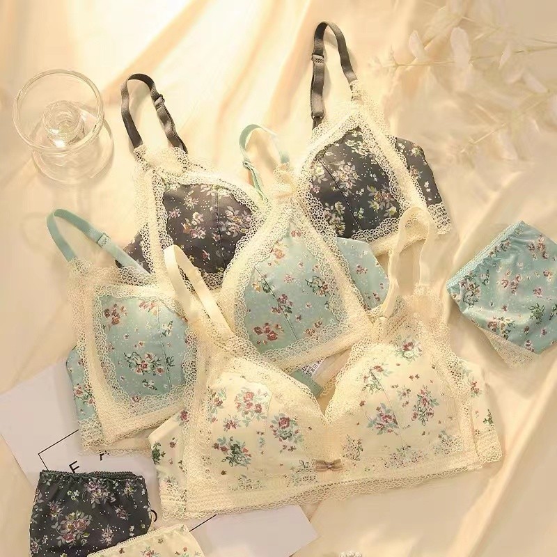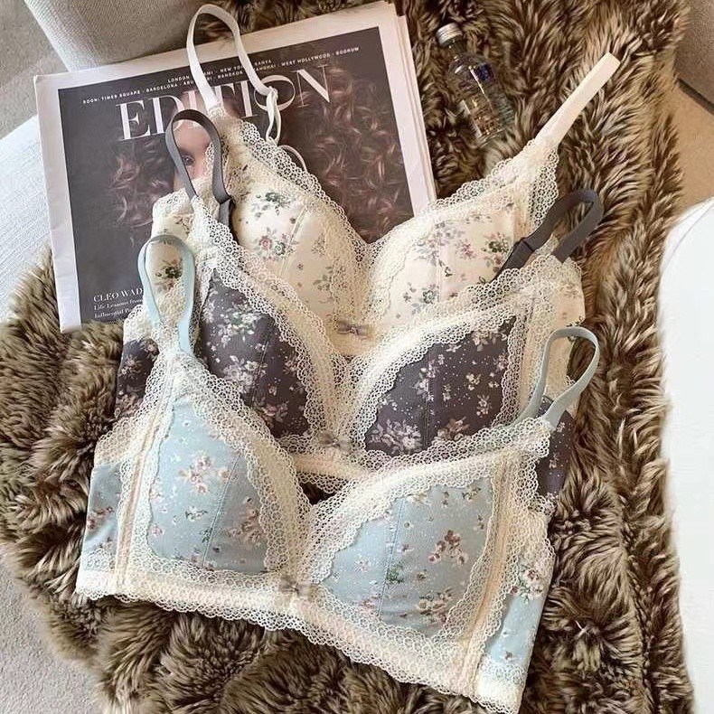 ✨พร้อมส่งในไทย✨ชุดชั้นในไร้โครง มีลายดอกไม้น่ารัก เสื้อชั้นในฟองบาง ใส่สบาย มีสามสีให้เลือก รุ่น NY94