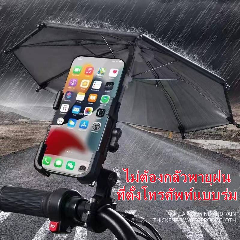 ✨ ที่จับมือถือติดมอเตอร์ไซค์ (พร้อมร่ม)กันฝนตก ป้องกันแสงแดด มีติดก้านกระจก/ติดแฮนด์