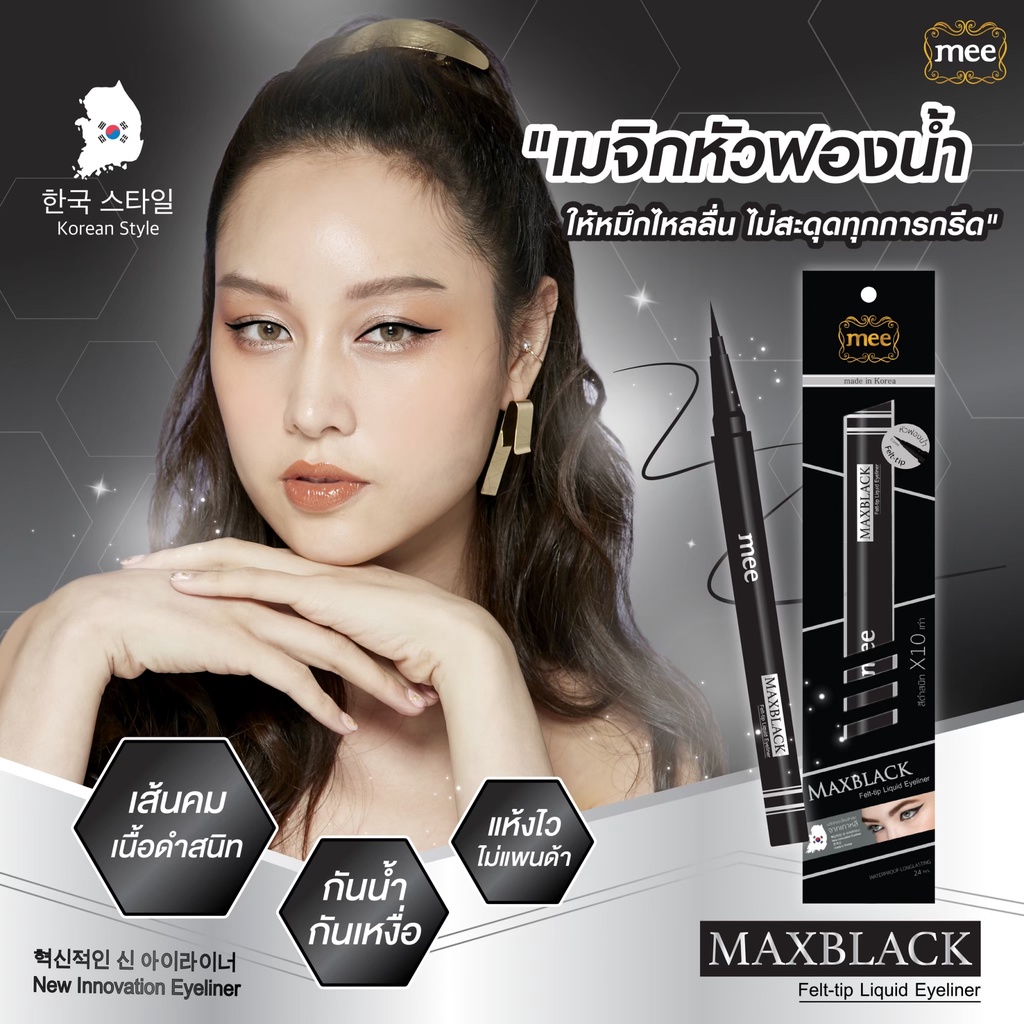 ???Mee MaxBlack Felt-tip Liquid Eyeliner อายไลเนอร์หัวฟองน้ำ สีดำสนิท ติดทน กันน้ำ ???