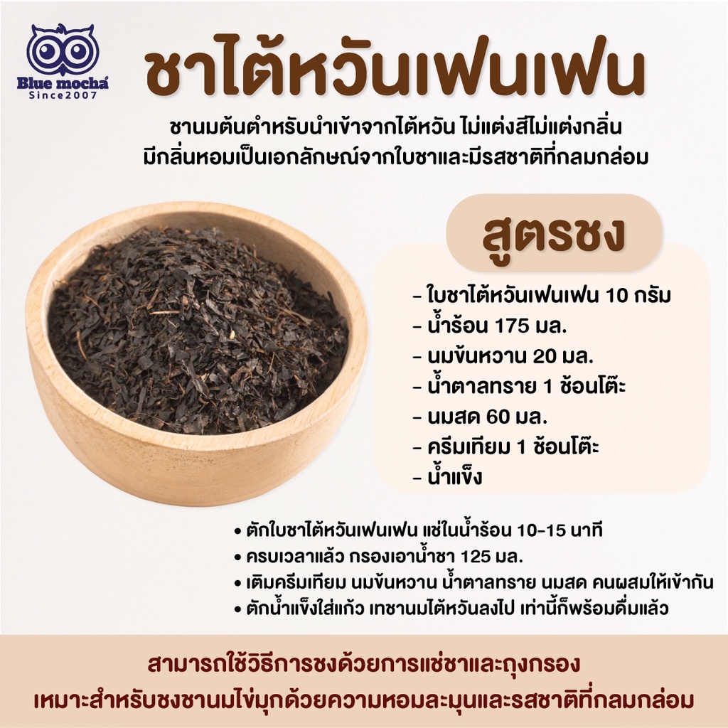 ผงชาไต้หวัน ที่มีกลิ่นหอมอ่อน ๆ เป็นเอกลักษณ์ ไม่ผ่านการแต่งสี ไม่ผ่านการแต่งกลิ่น