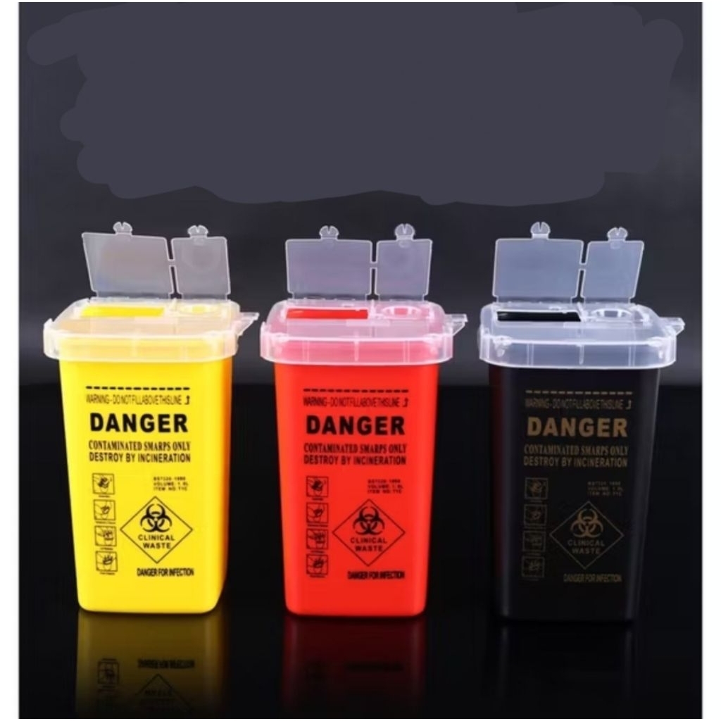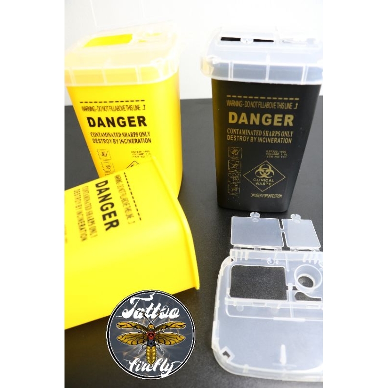ถังขยะอันตราย สำหรับทิ้งเข็มสัก หรือวัสดุปนเปื้อน สำหรับงานสัก tattoo