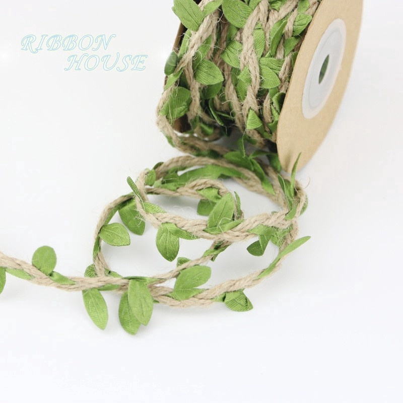(5เมตร/ม้วน) ใบไม้ แฟลกซ์ เชือก ดอก เฮเซลนัท ริบบิ้น เชือก โซ่ สีเขียว ใบไม้ บ้าน สวน