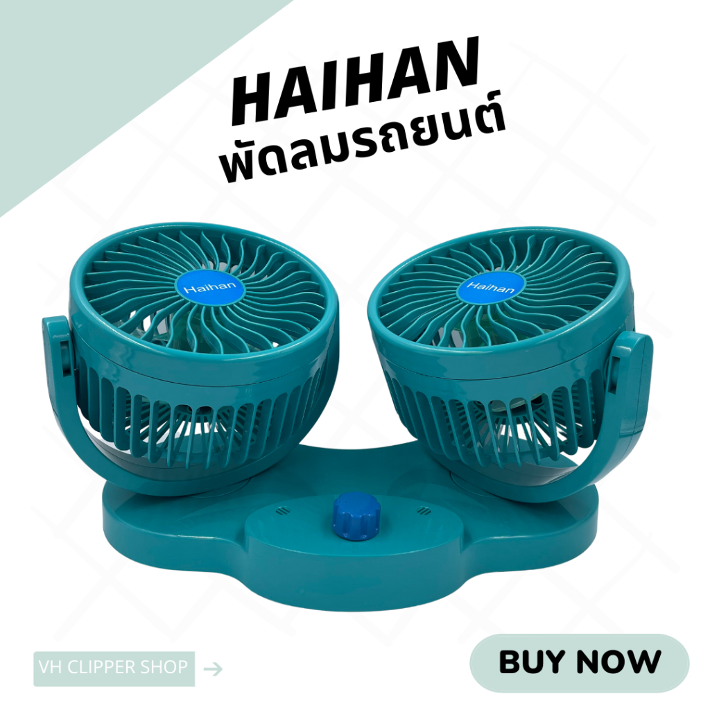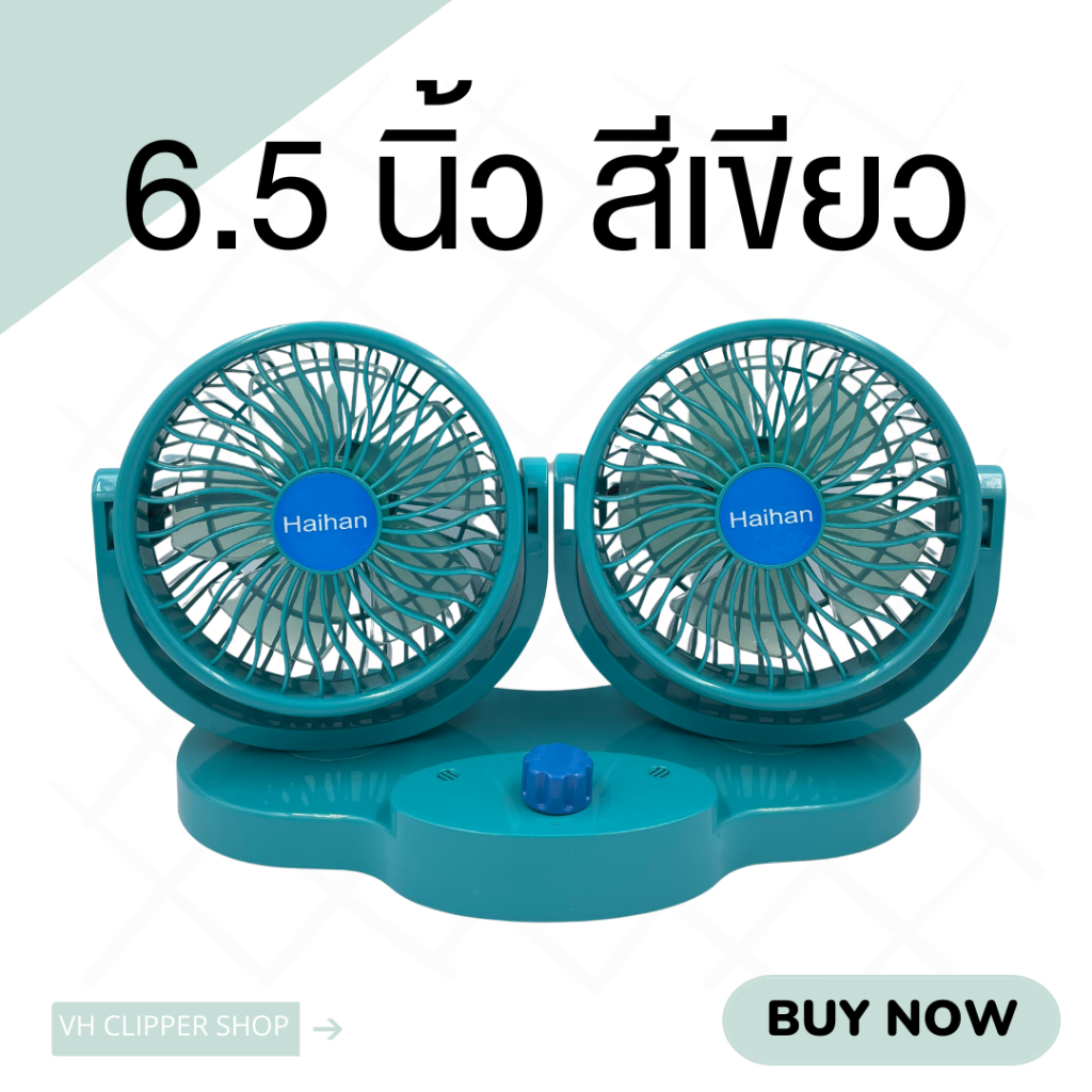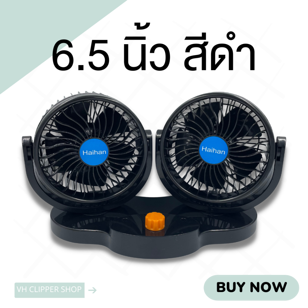 Haihan พัดลมติดรถยนต์ หัวพัดลมใช้ในรถยนต์ รถบรรทุก -หน้ากว้าง 6.5 นิ้ว -มี 2 สี ดำ,เขียว -ตัวพัดลมมี 5 ใบพัด -หมุนได้ 3