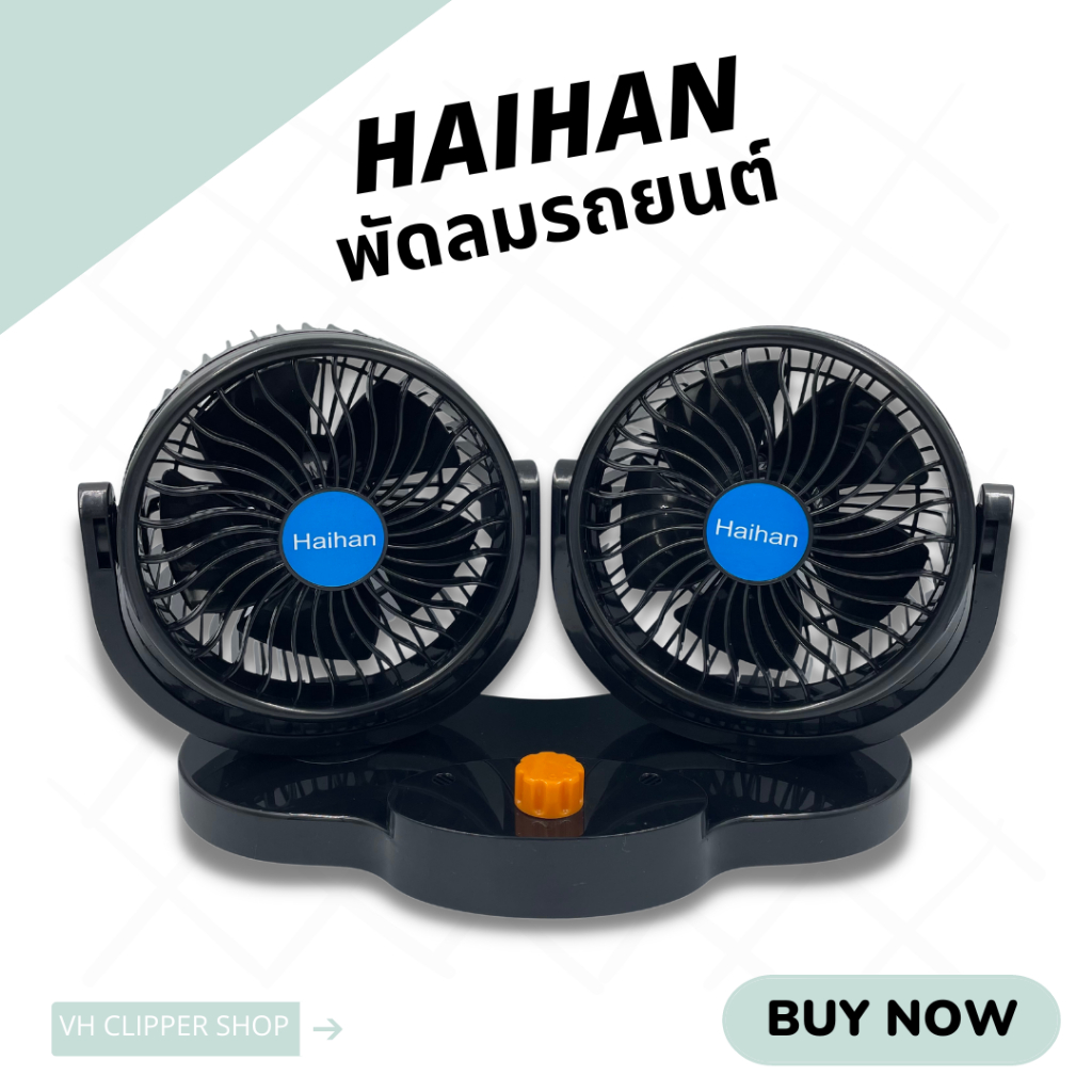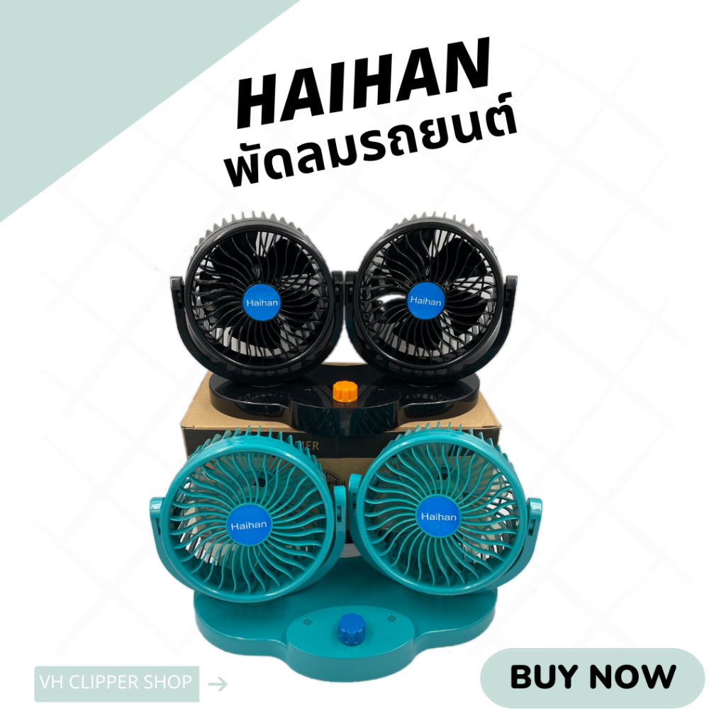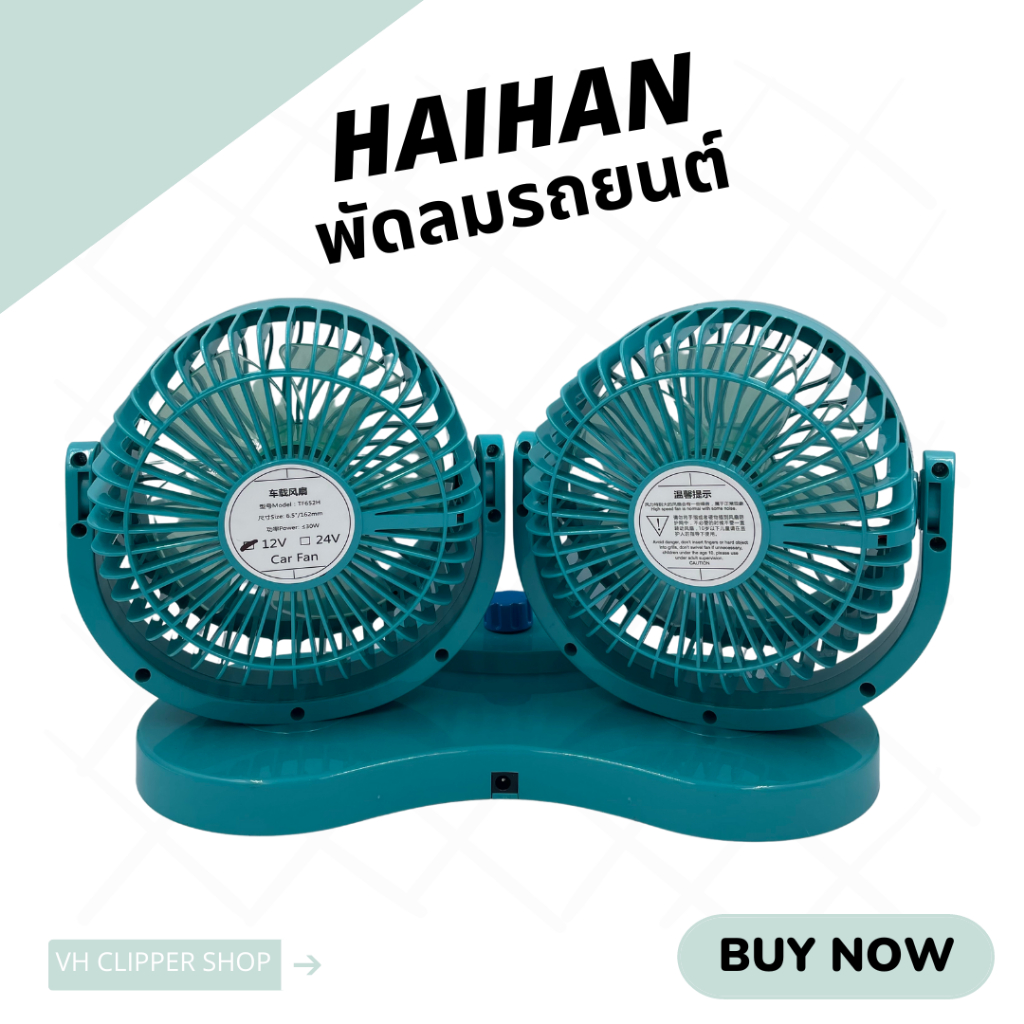 Haihan พัดลมติดรถยนต์ หัวพัดลมใช้ในรถยนต์ รถบรรทุก -หน้ากว้าง 6.5 นิ้ว -มี 2 สี ดำ,เขียว -ตัวพัดลมมี 5 ใบพัด -หมุนได้ 3