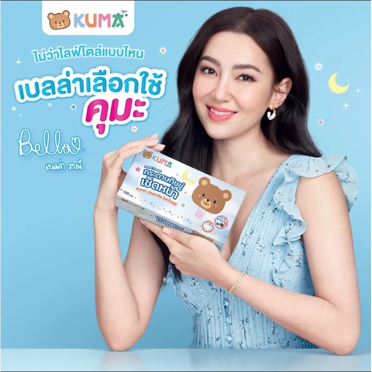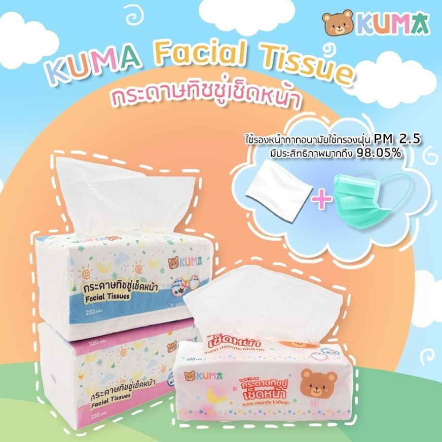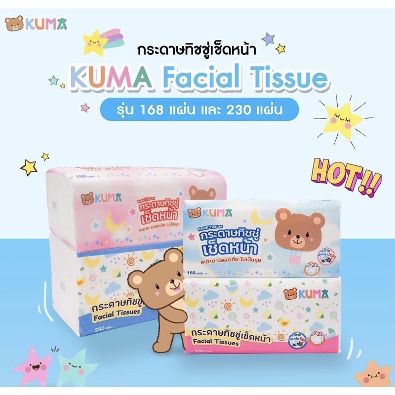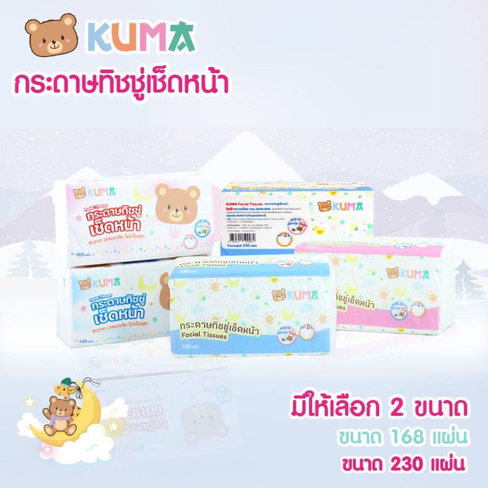 Kuma กระดาษทิชชู่สำหรับเช็ดหน้า คุมะ สะอาดบางเบา ใช้สบาย กระดาษชำระคุมะซอฟแพ็ค 168/230 แผ่น