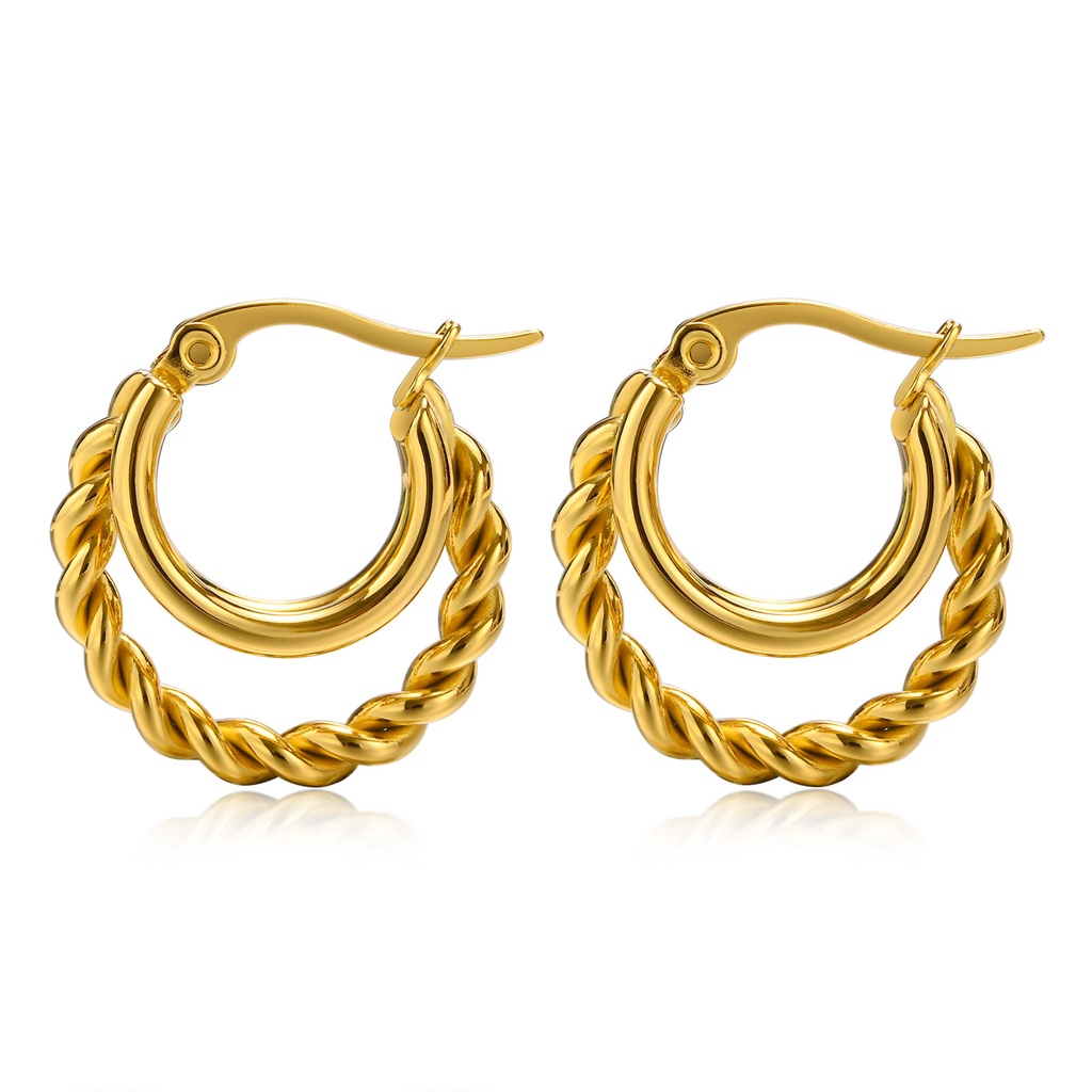 Vnox แบรนด์ ผู้หญิง ต่างหูแฟชั่น – สเตนเลส โซ่บิด บุคลิกภาพ ต่างหูทอง เครื่องประดับ ของขวัญ