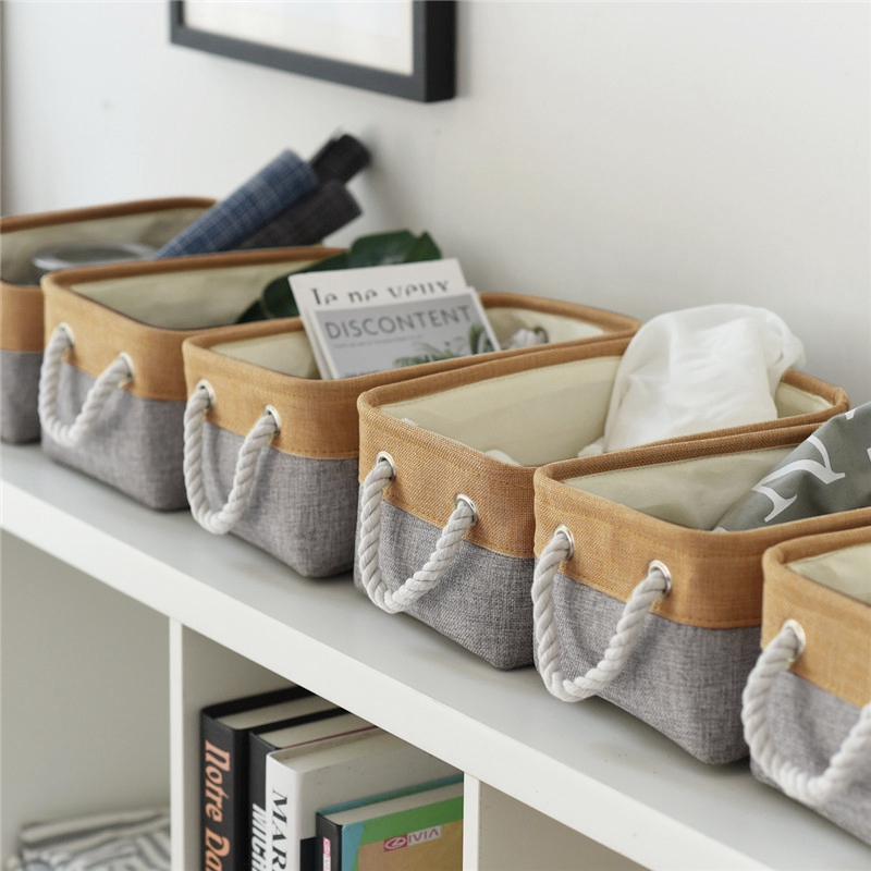 ตะกร้าเก็บของ ตะกร้าเก็บของ ตะกร้าเก็บของแบบพกพา ผ้าฝ้ายและผ้าลินินแบบพับได้