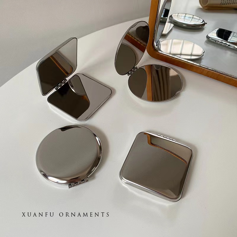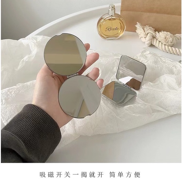 Ins กระจกแต่งหน้า สองด้าน ขนาดเล็ก แบบพกพา พับได้ สําหรับหอพักนักเรียนหญิง