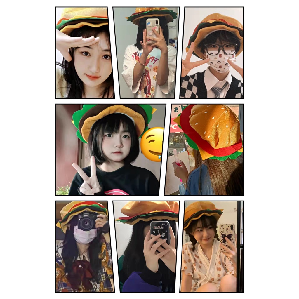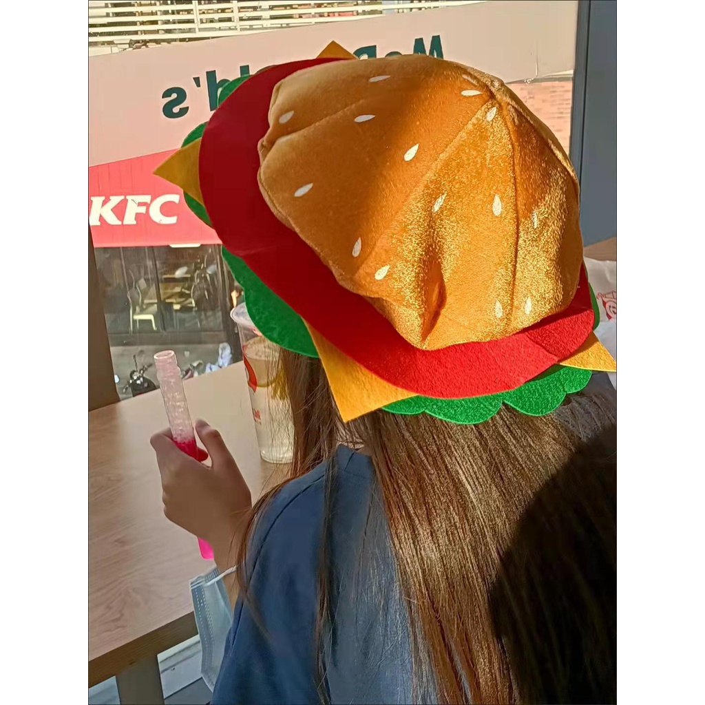 หมวกเบเร่ต์ ลายการ์ตูนแฮมเบอร์เกอร์น่ารัก ขนาดใหญ่ เหมาะกับงานปาร์ตี้ สําหรับผู้หญิง