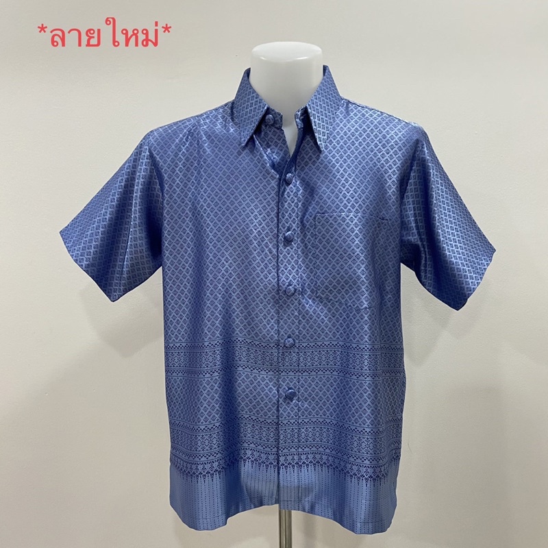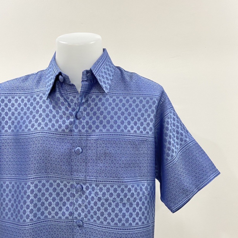 เสื้อผู้ชายลายไหมแพรวา No.08 (น้ำเงิน) (ทักแชทสอบถามได้นะคะ?)