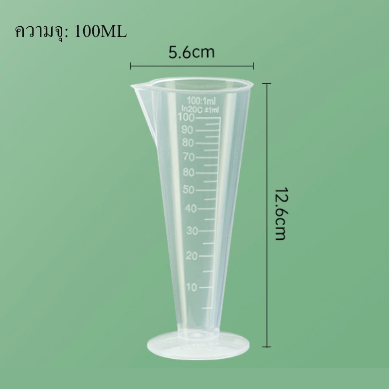 พร้อมส่งราคาถูกถ้วยตวง100mlทรงกรวยConical Shapeพลาสติกทนความร้อนทนกรด-ด่างตั้งได้เทของเหลววัดระดับเช็คปริมาตรเทง่ายไม่หก