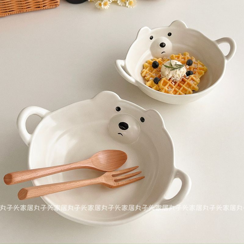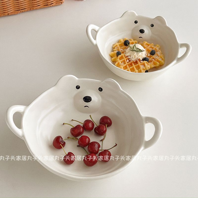 [พร้อมส่ง] ชามเซรามิค หูคู่ สําหรับใส่อาหารเช้า ข้าวโอ๊ต โยเกิร์ต ก๋วยเตี๋ยว