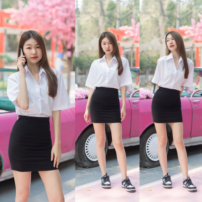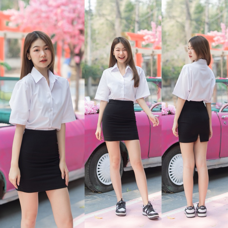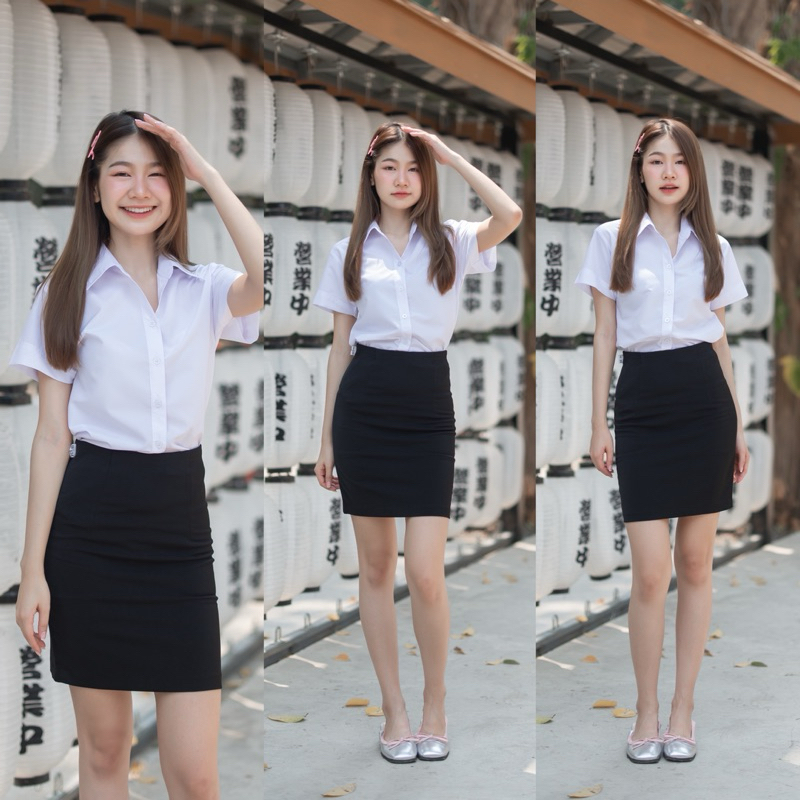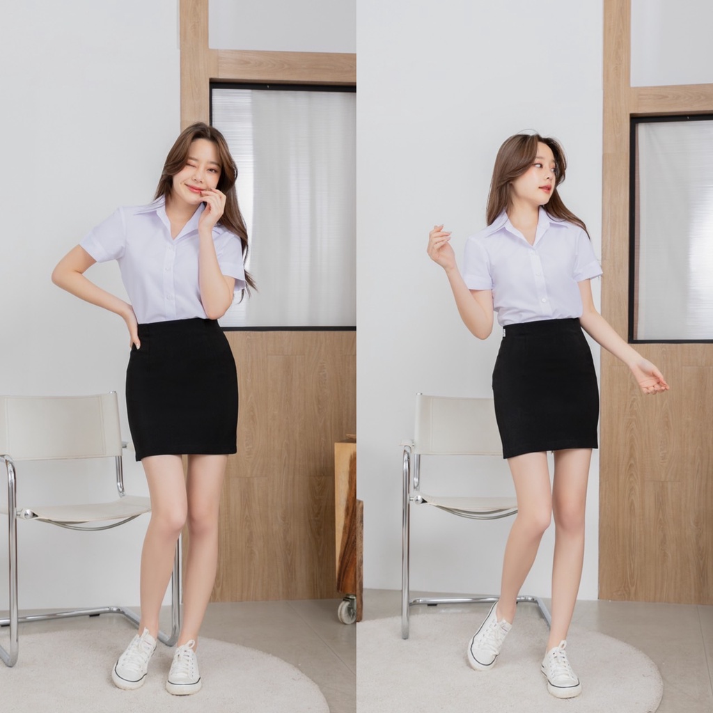 กระโปรงนักศึกษา ทรงเอ ผ่าหลัง เอว 23-34 ผ้าฮานาโกะ สีดำ