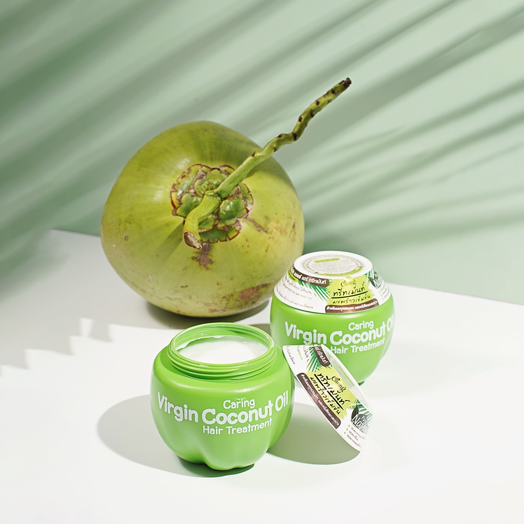 Caring Virgin Coconut Oil Hair Treatment ทรีทเม้นท์บํารุงผมน้ำมันมะพร้าว สูตรบำรุงผมแห้งเสีย 230 กรัม