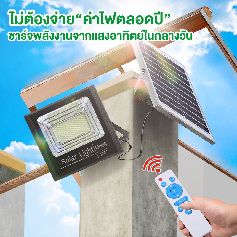 โคมไฟโซล่าเซลล์ ไฟโซล่าเซลล์1000W ไฟพลังงานแสงอาทิตย์กันน้ำIP67 สายไฟ5เมตร ไฟติดพนังโซล่าเซลล์พร้อมรีโมท กันน้ำกันฟ้าผ่า