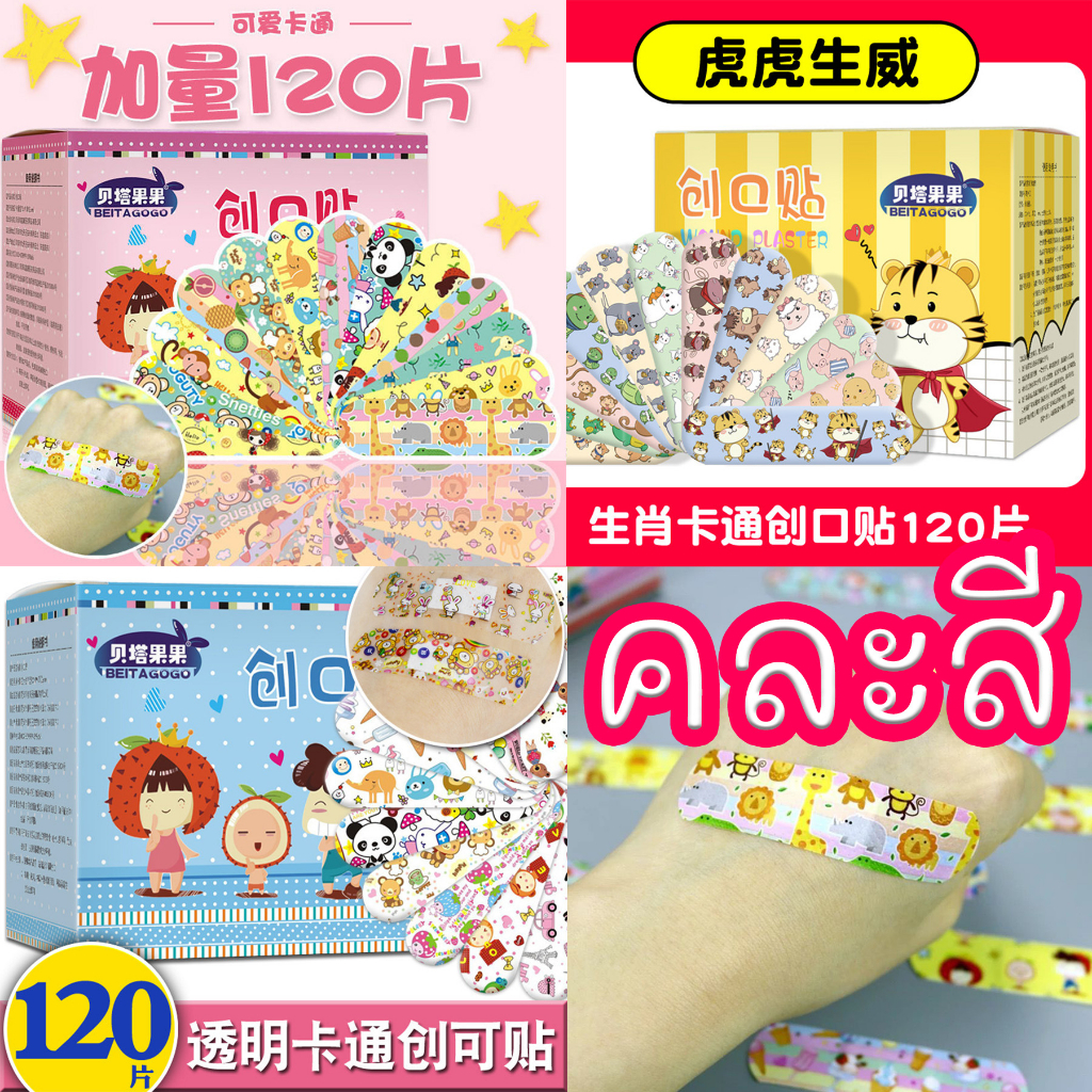 พลาสเตอร์ปิดแผล ลายการ์ตูน กันน้ำได้ (1กล่องมี 120 แผ่น) #คละลาย #พร้อมส่ง