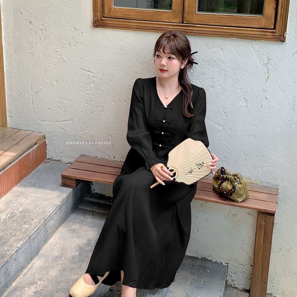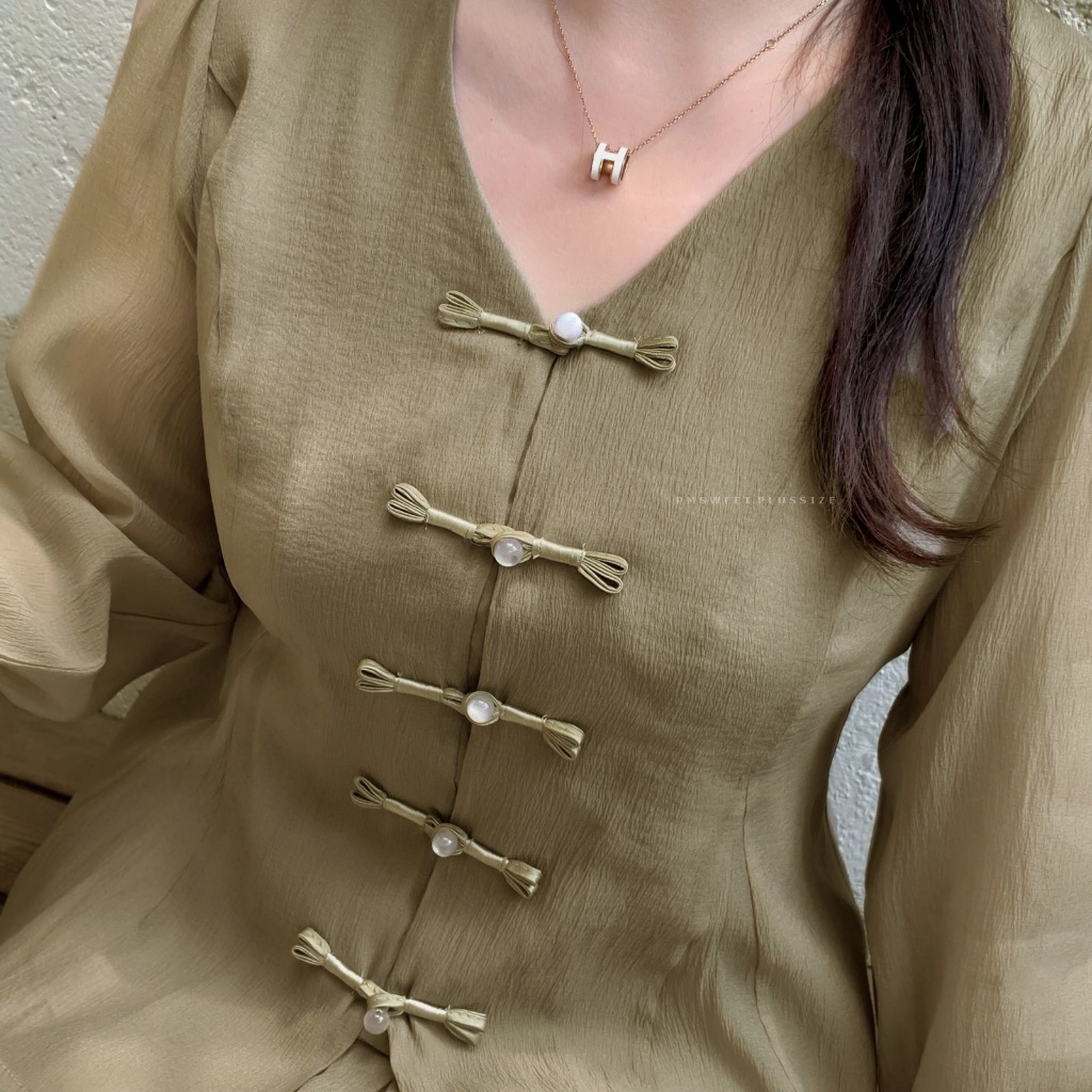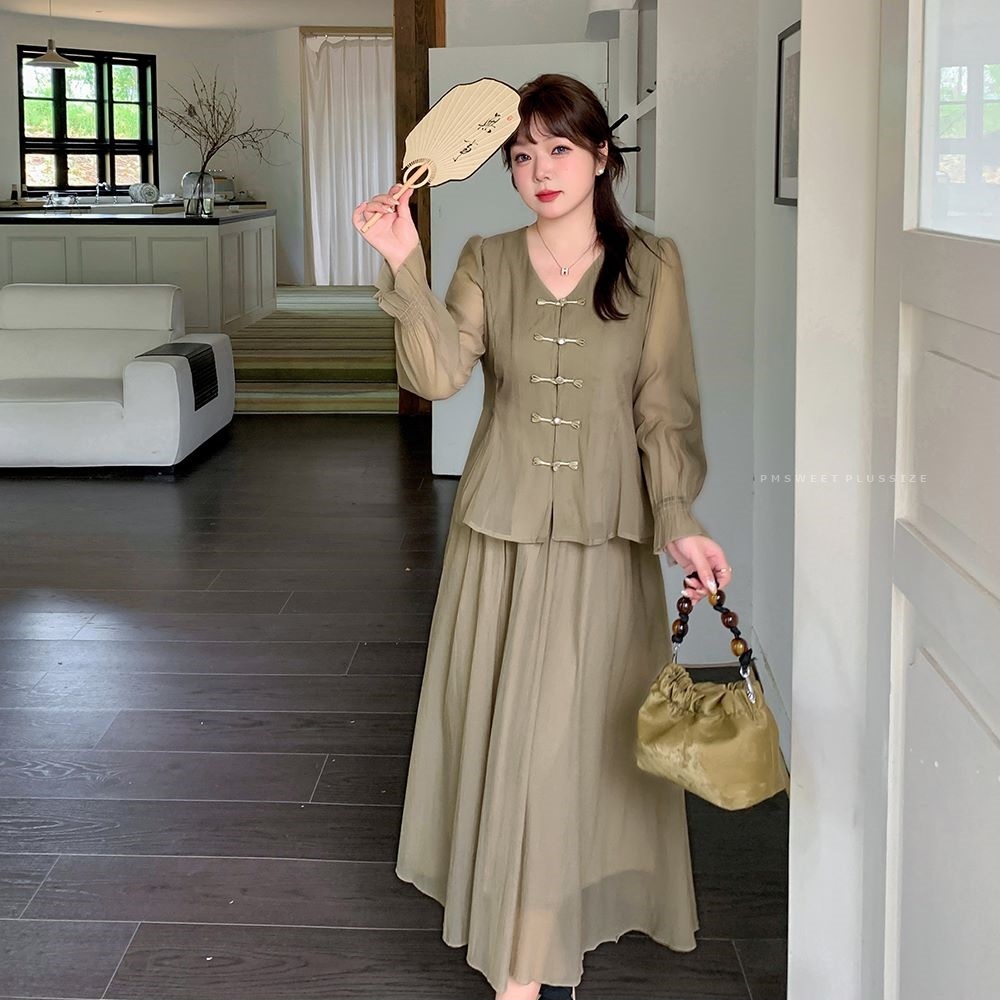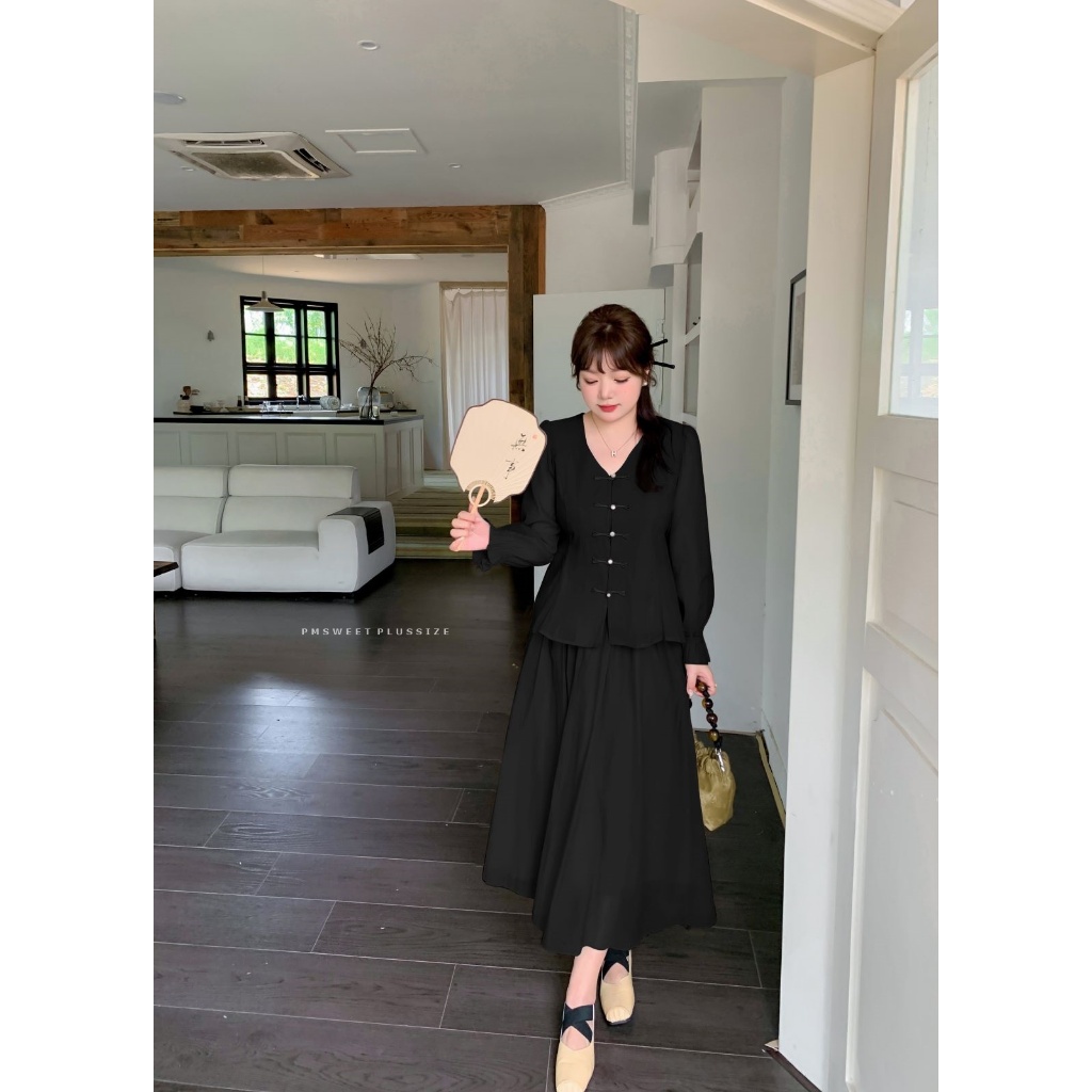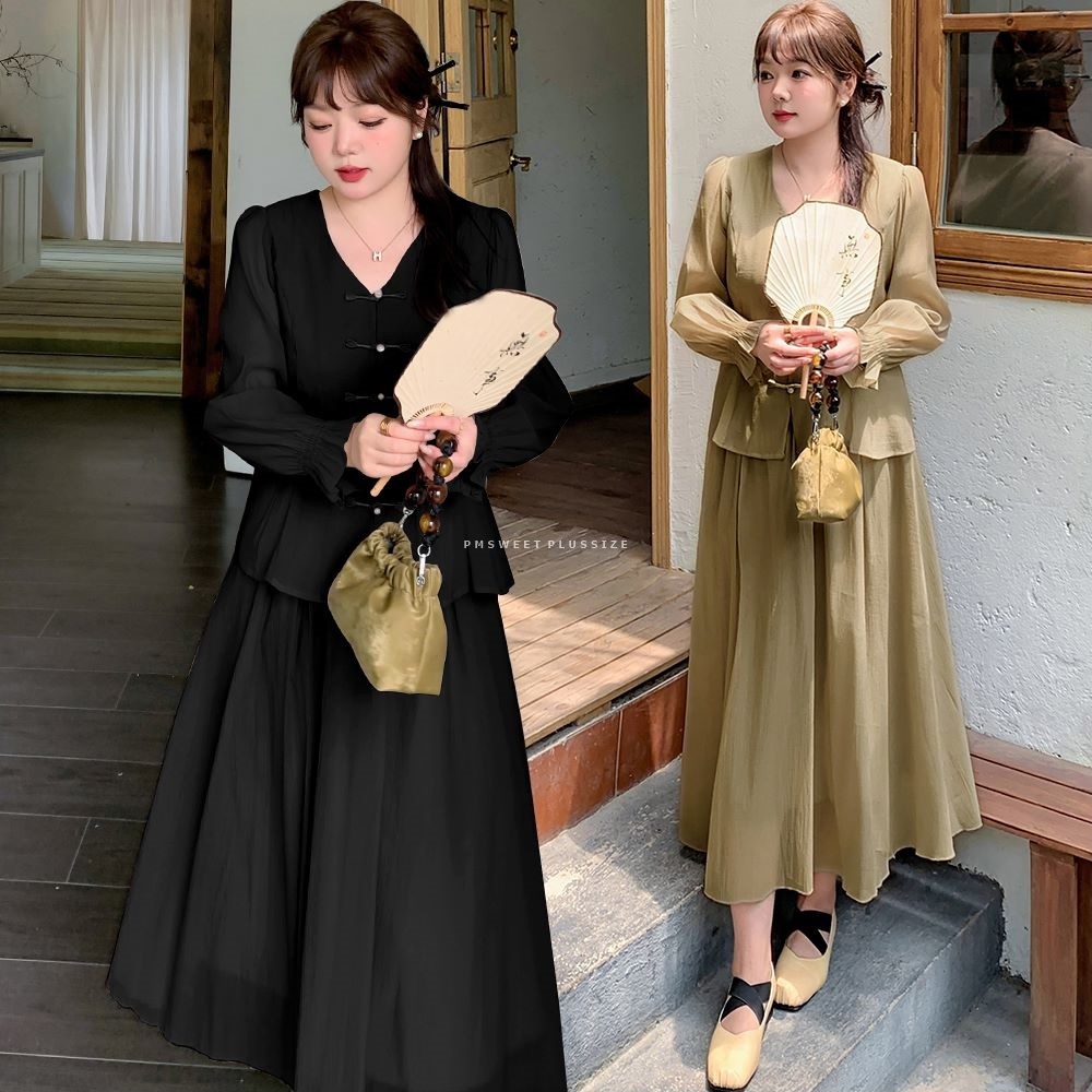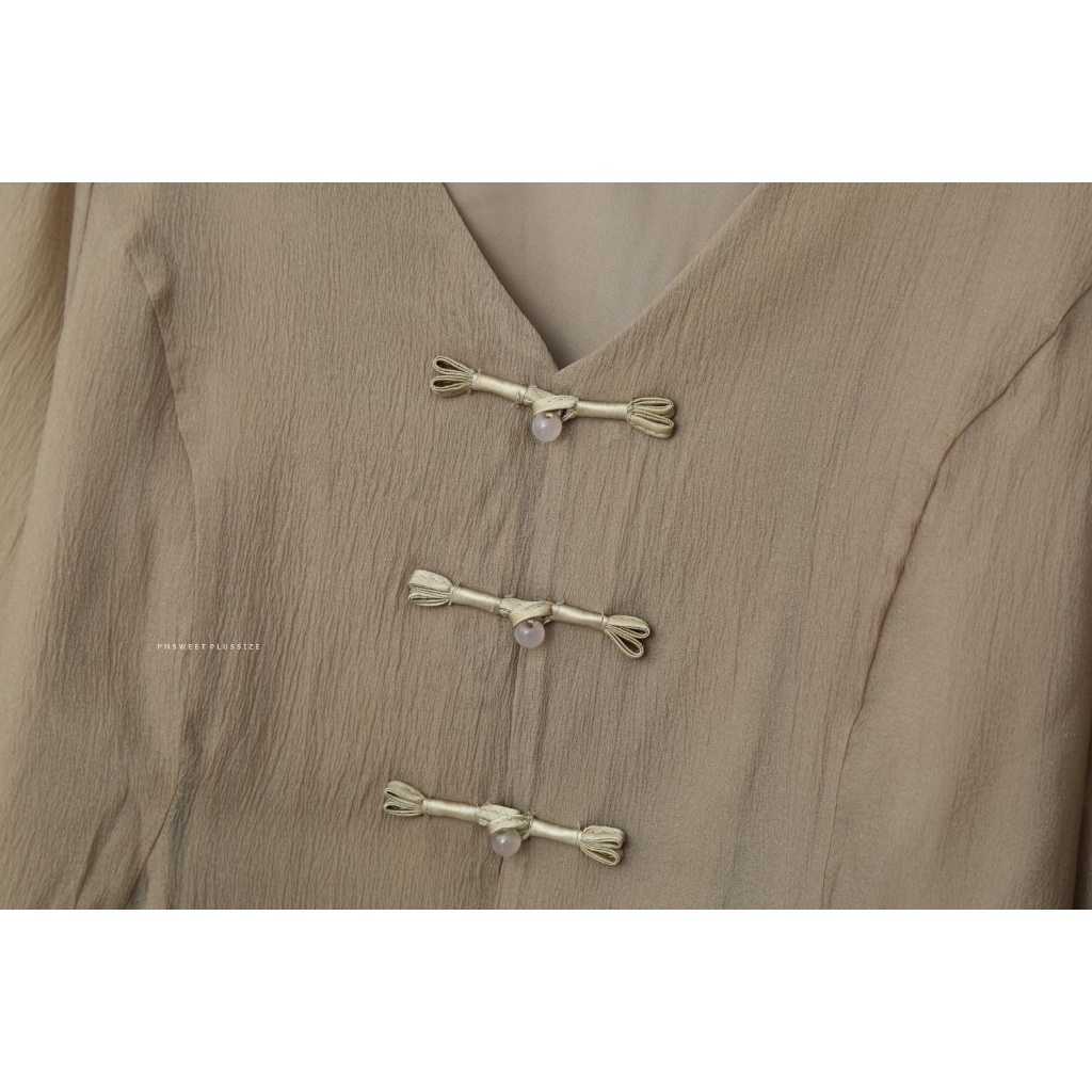 [ ?อกถึง 51″ ] : PMP2285 : พรีออเดอร์ เสื้อผ้าไซส์ใหญ่ คนอ้วน สาวอวบ ชุดเซตคอวีสไตล์จีนงานผ้าไหมผสมฝ้ายแบบสวยใส่ไปงานได้