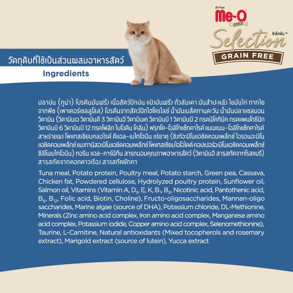 มีโอ โกลด์ ซีเล็คชั่น เกรนฟรี อาหารแมว สูตรแมวเลี้ยงในบ้าน 400 กรัม