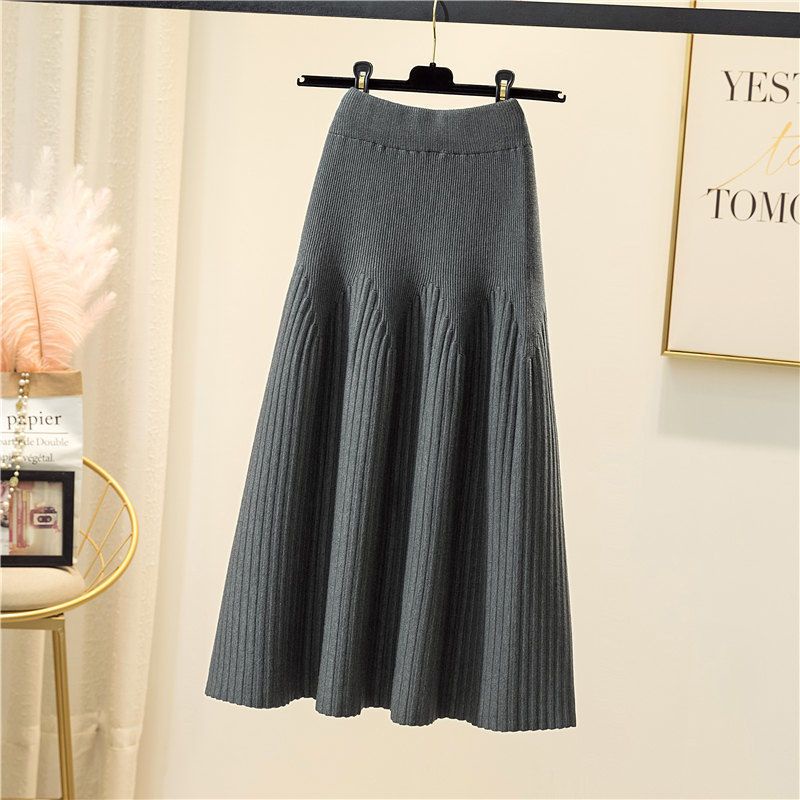 กระโปรงยาวครึ่งตัว ความยาวปานกลาง ผ้าถัก ทรงเอ เข้ากับทุกการแต่งกาย แฟชั่นฤดูใบไม้ร่วง และฤดูหนาว สําหรับผู้หญิง 2022