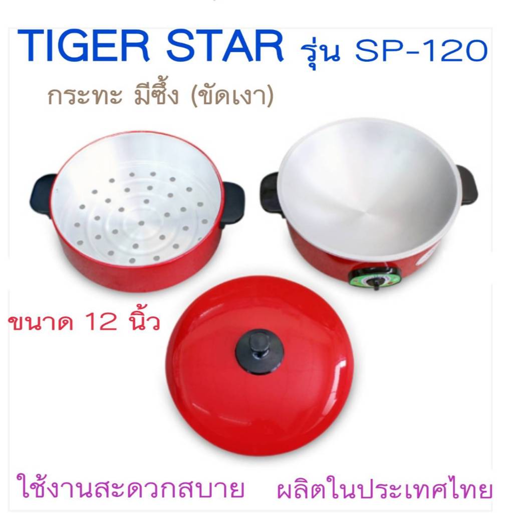 TIGER กระทะแดง รุ่น SP-120 มีซึ่ง / รุ่น SP-100 ไม่มีซึ้ง (ผลิตในไทย) สินค้าของใหม่ รับประกัน 1 ปี