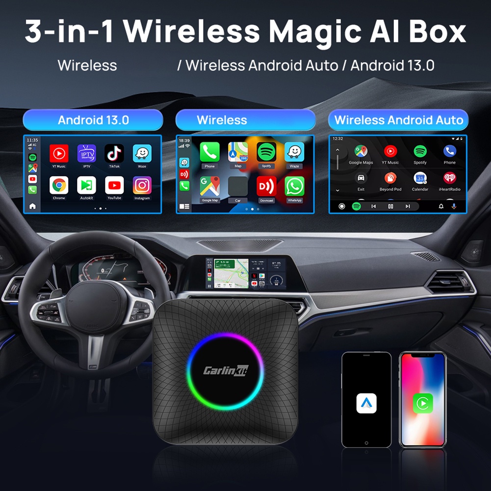 Carlinkit CarPlay Ai กล่องทีวีไร้สาย Android 13 8+128GB QCM 8-Core 6225 Android Auto YouTube Netflix IPTV 4G LTE