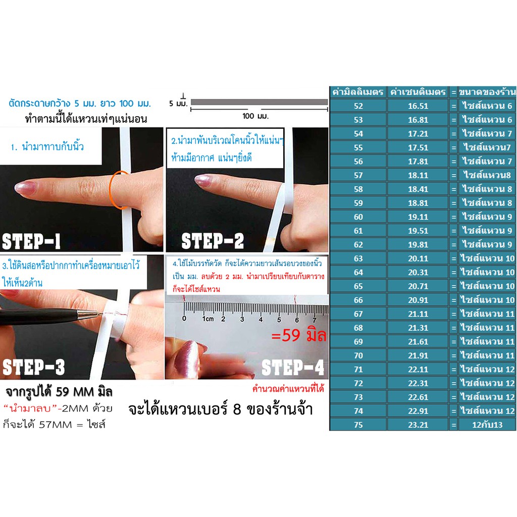 ✔ มีไซส์แหวนเบอร์ 7-12ครบพิเศษมีไซส์13 หรือ "