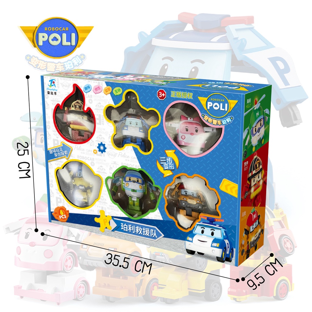 ของเล่น โพลี่ เซตหุ่นยนต์ 1 เซต 6 ตัว เปลี่ยนร่างเป็นรถ เป็นหุ่นยนต์ได้