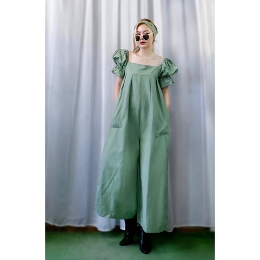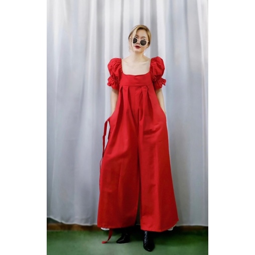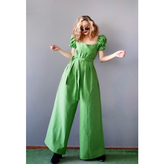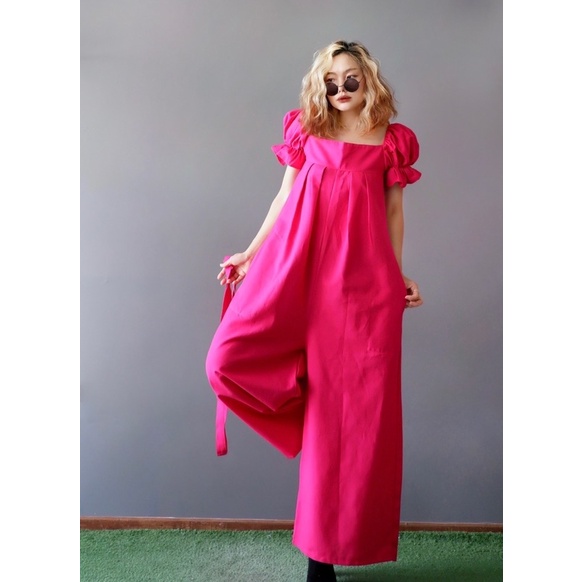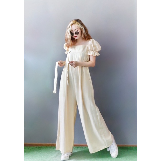 [ SET ] ชุดจั๊มสูท แขนตุ๊กตา ผ้าฝ้าย มาพร้อมเชือกผูกเอว รอบอก 32-42”