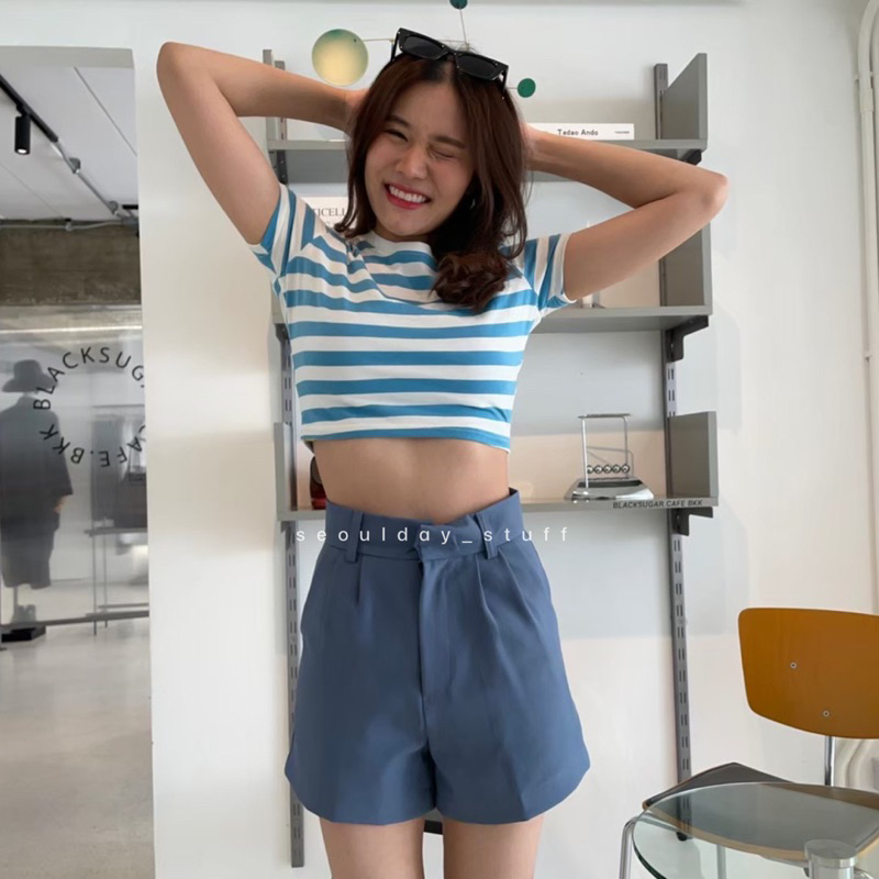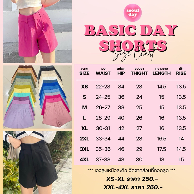ไซส์ XS-4XL / seoulday_stuff◆(BDS012) Basic Day Shorts กางเกงขาสั้นเอวสูง ขาสัั้นสีน้ำเงิน สีสวย ทรงดี พรางพุง ใส่สบาย