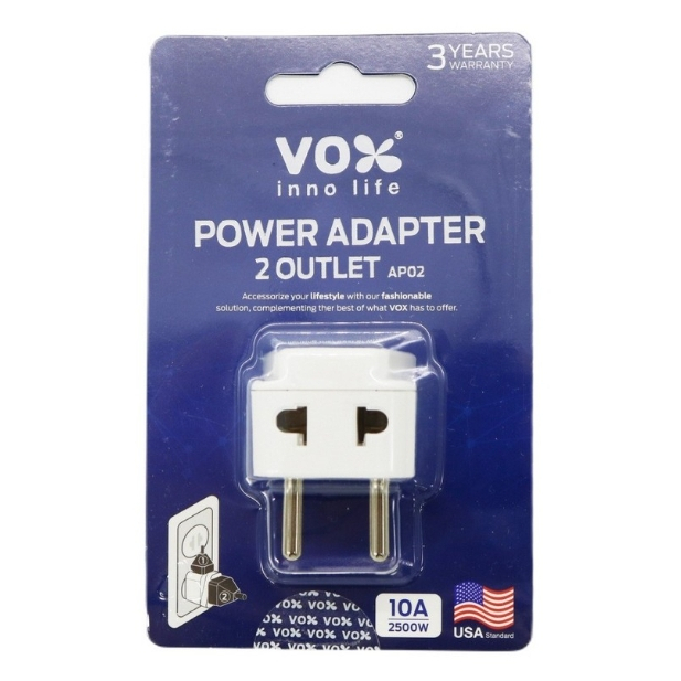 Vox หัวแปลงปลั๊กไฟ 2 ช่อง F5ADP-VX01-AP02 หัวกลมและแบน
