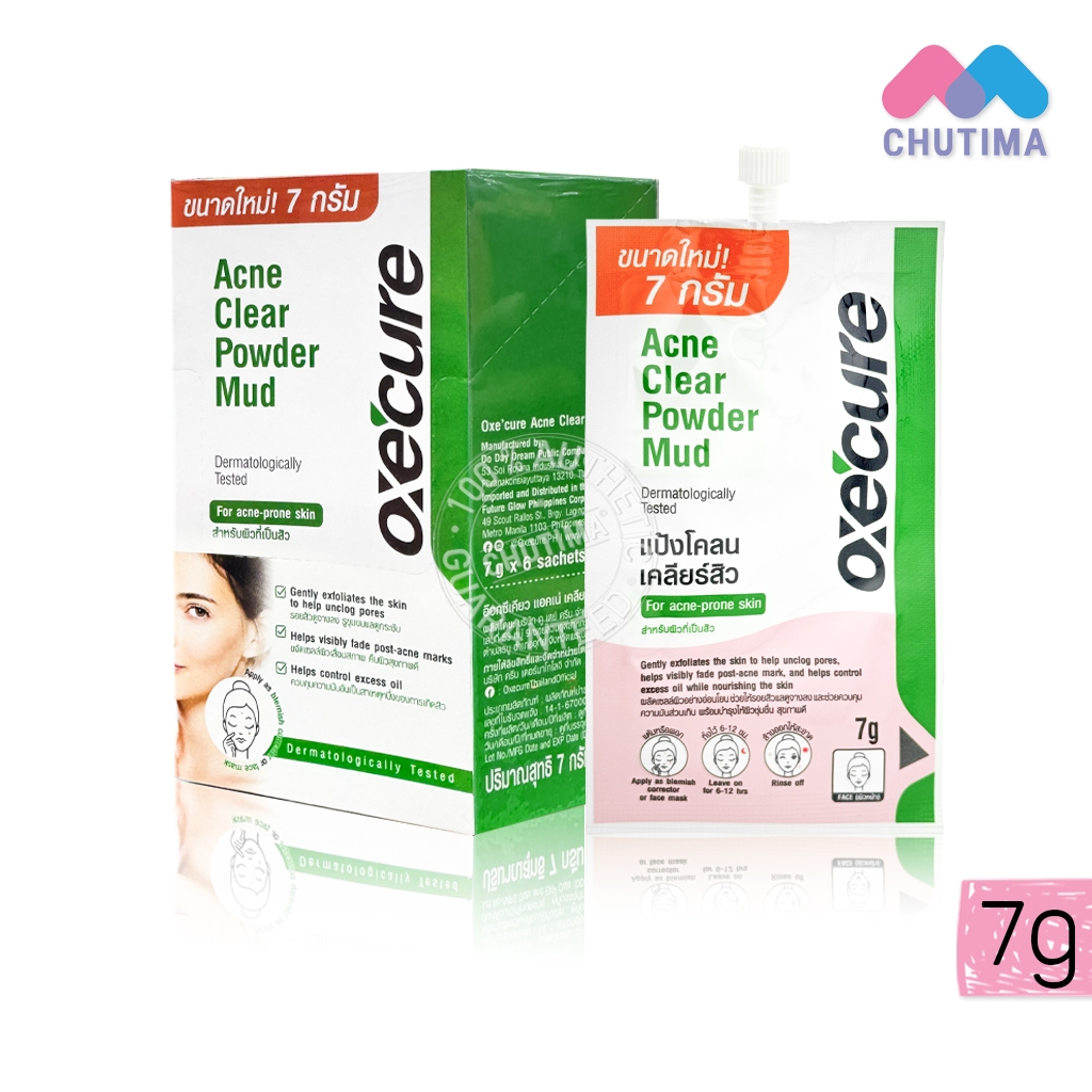 (1ซอง) แป้งโคลนชมพู อ๊อกซีเคียว แอคเน่ เคลียร์ พาวเดอร์ มัด Oxe’cure Acne Clear Powder Mud 7g.