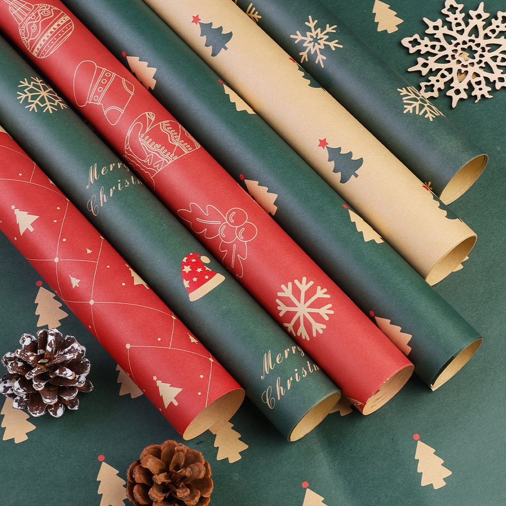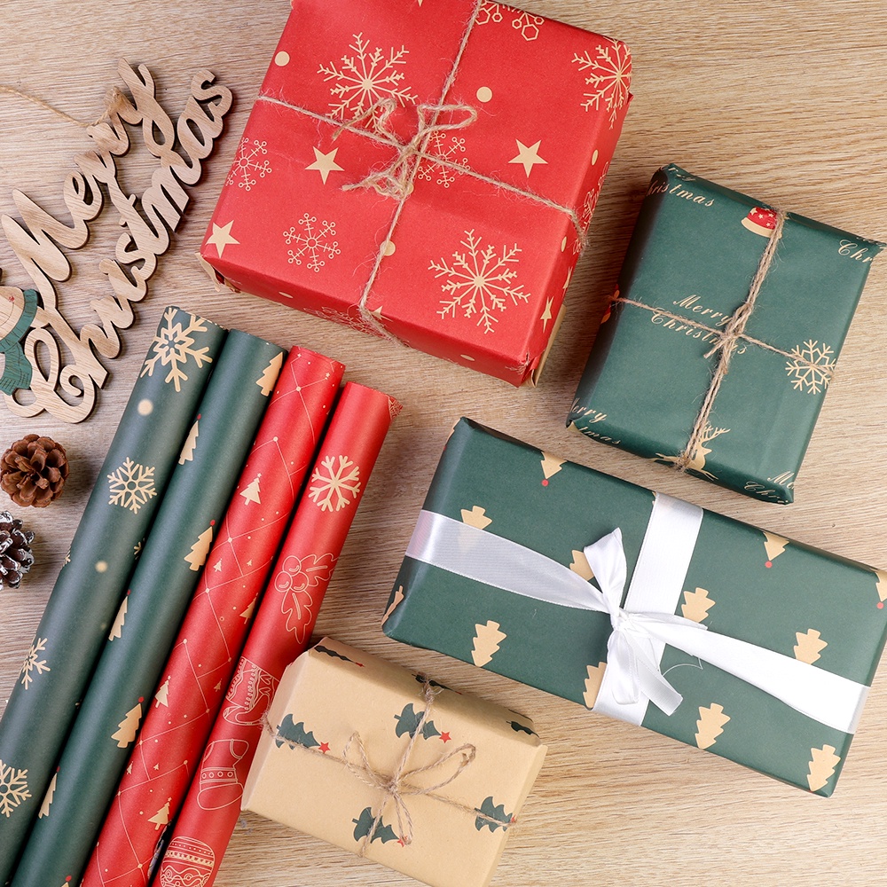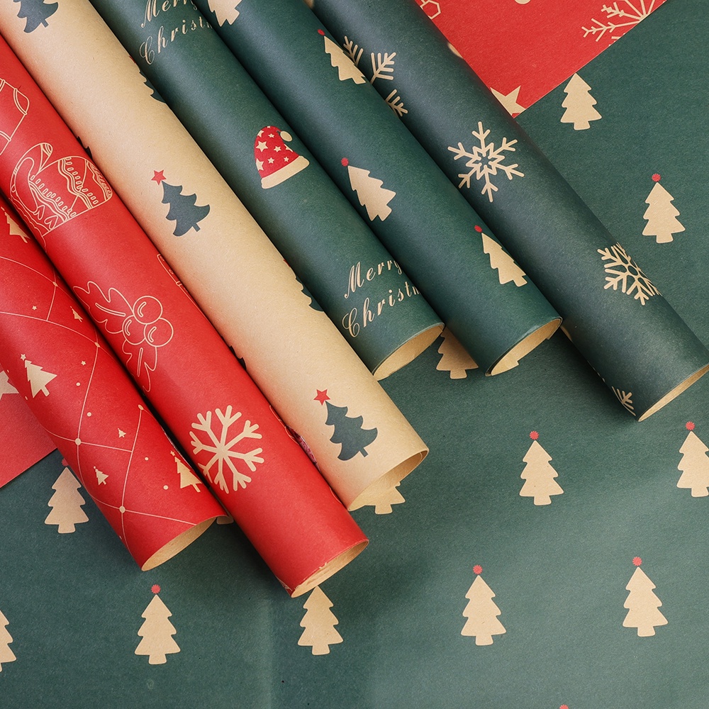 กระดาษคราฟท์ พิมพ์ลายดอกไม้ กันน้ํา สีเขียว สีแดง สําหรับตกแต่งช่อดอกไม้ ห่อของขวัญคริสต์มาส DIY