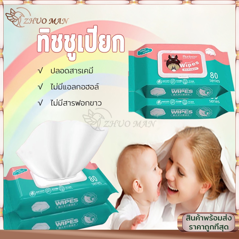 ทิชชูเปียก ทิชชู่เปียกทำความสะอาด 80 แผ่น ราคาถูก สูตรน้ำบริสุทธิ์ น้ำเต็มๆแผ่น ผ้านุ่มชุ่มชื่น 1คำสั่งซื้อ =6แพ็ค