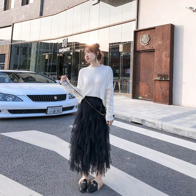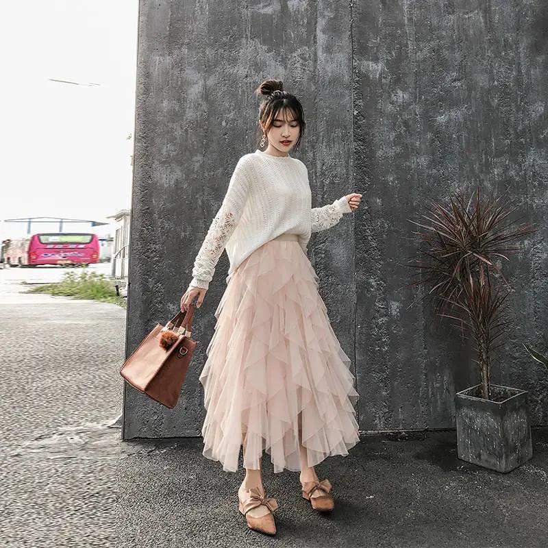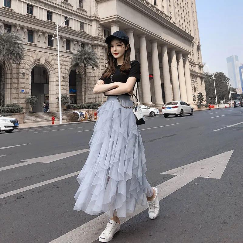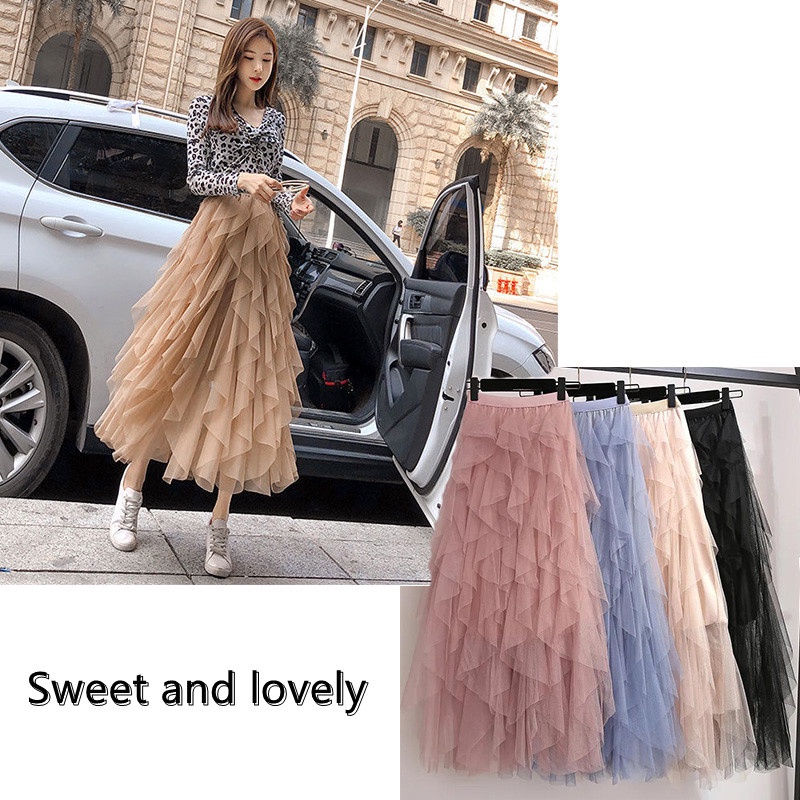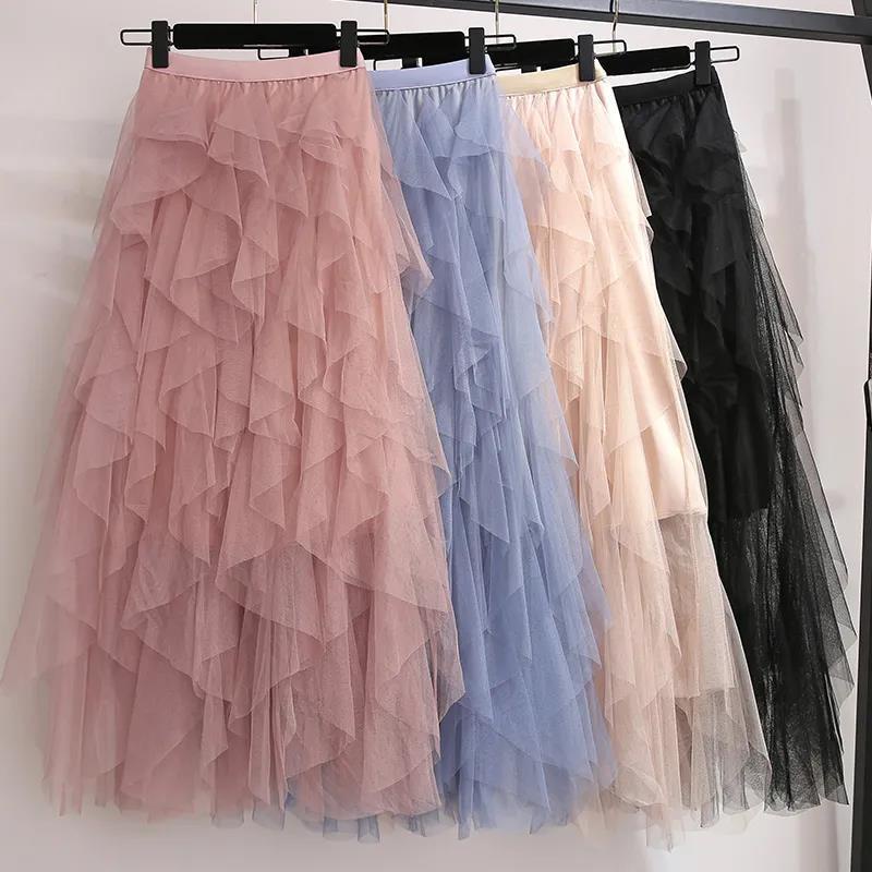 กระโปรงพลีท เอวสูง ผ้าตาข่าย พิมพ์ลายดอกไม้ สีพื้น แฟชั่นสําหรับสตรี 2023
